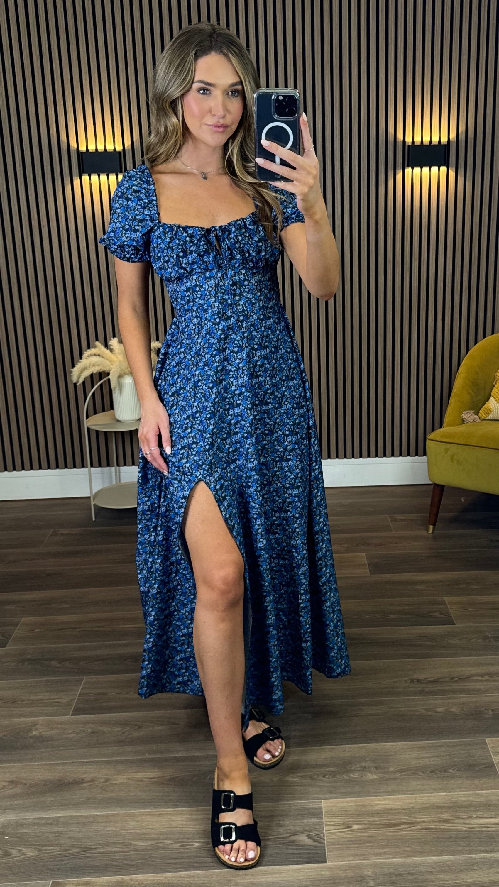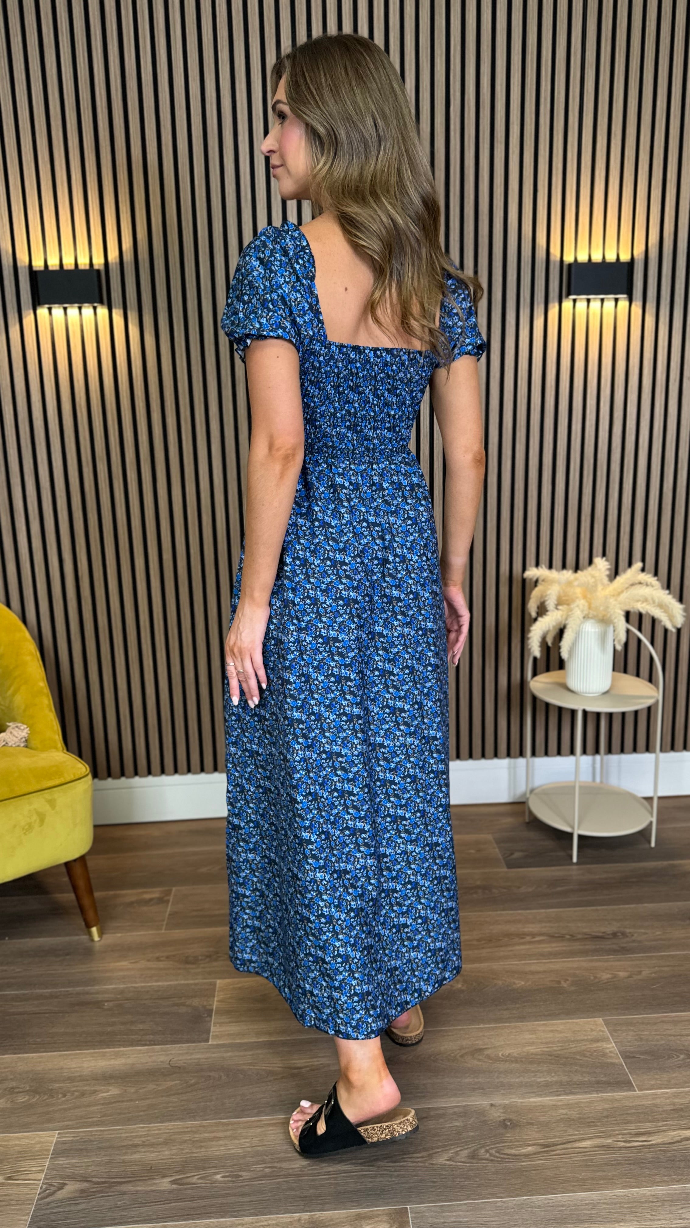 The Alessia Dark Blue Floral Milkmaid Midaxi Dress brings a sweet and charming vibe to your wardrobe 🌸. Featuring a soft floral print on a deep blue background, this dress offers a flattering fit with its classic milkmaid style and midaxi length. Perfect for sunny days or special moments, it combines comfort with a lovely, timeless look 💙.
