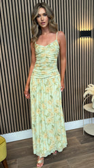 Alora Yellow Floral Mesh Strap Maxi Dress