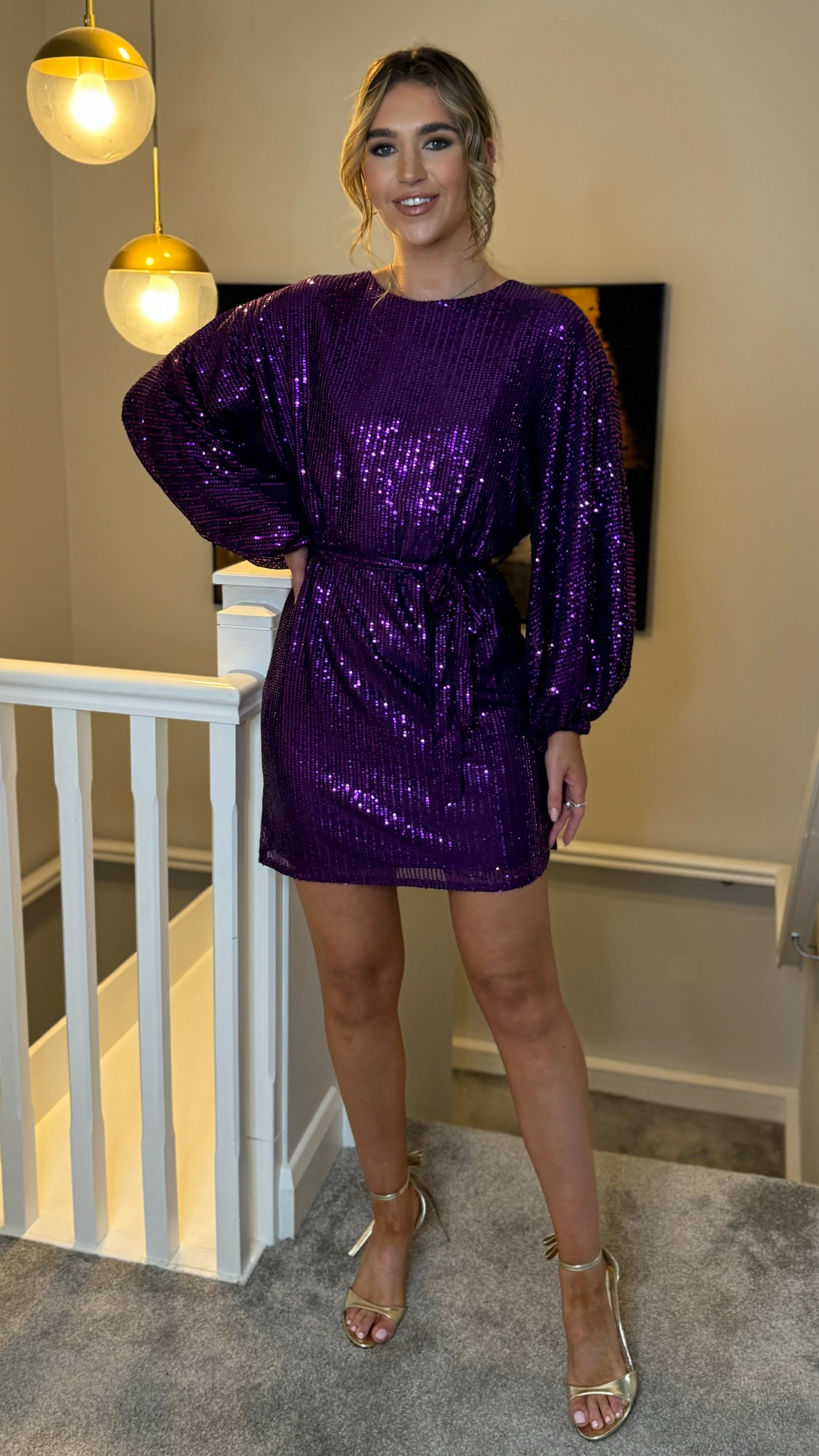 Alyona Purple Sequin Wide Sleeve Mini Dress