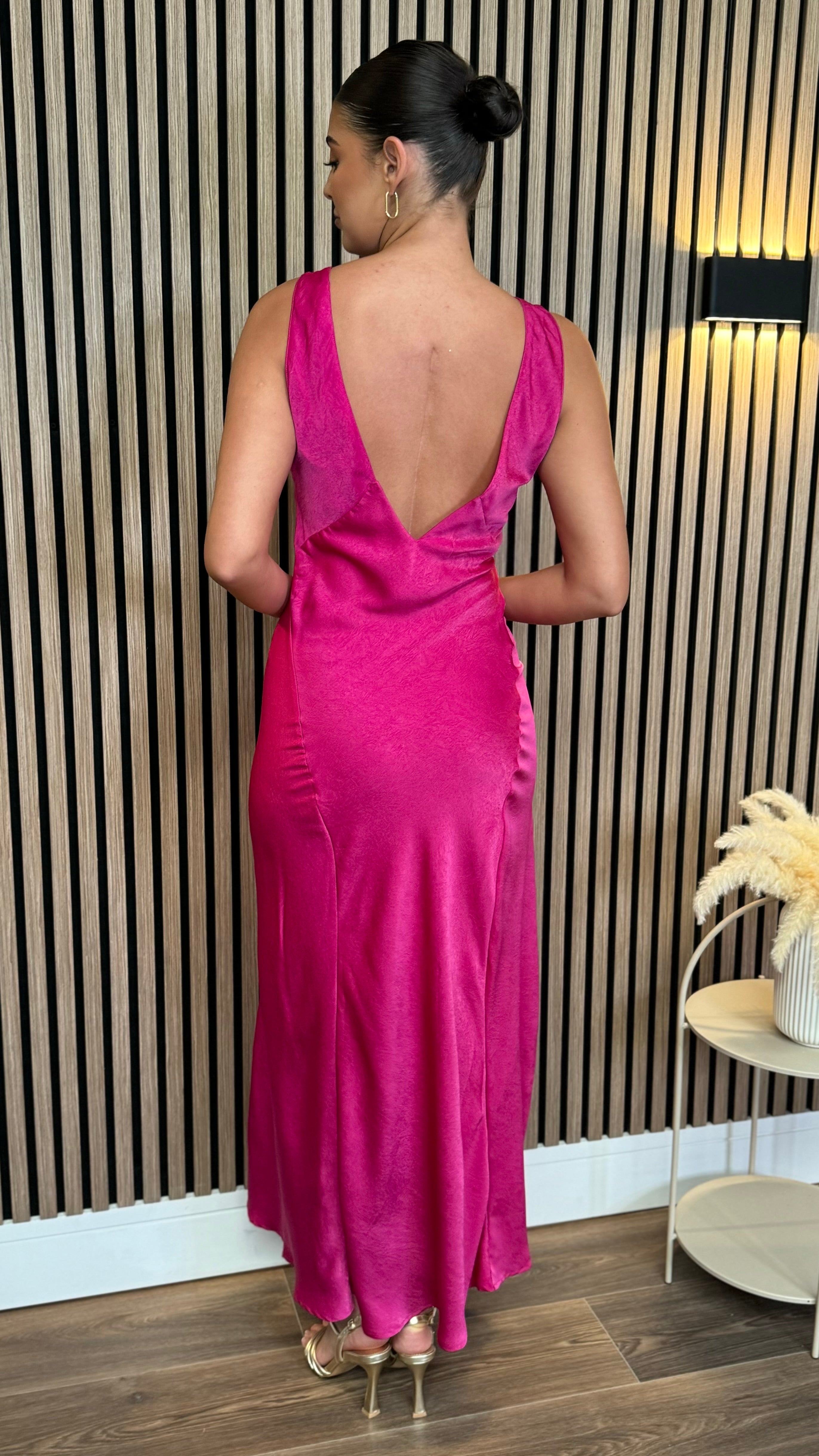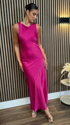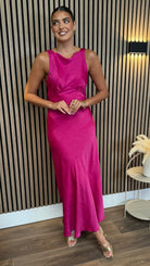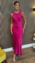 Amber Fuchsia Round Neck V Back Midi Dress