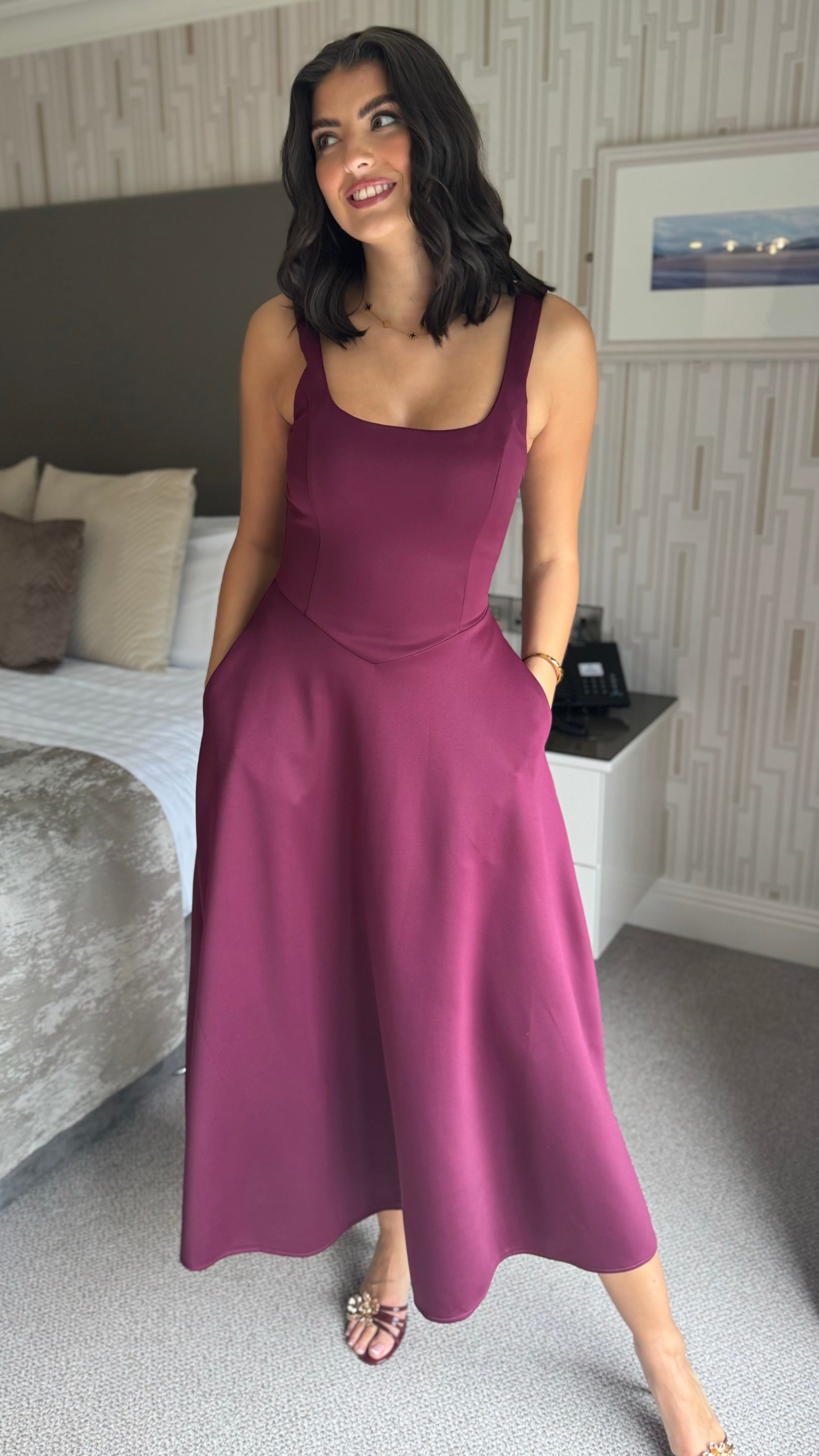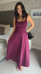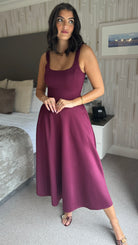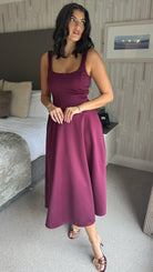 Avani Plum Square Neck Pocketed Midi Dress