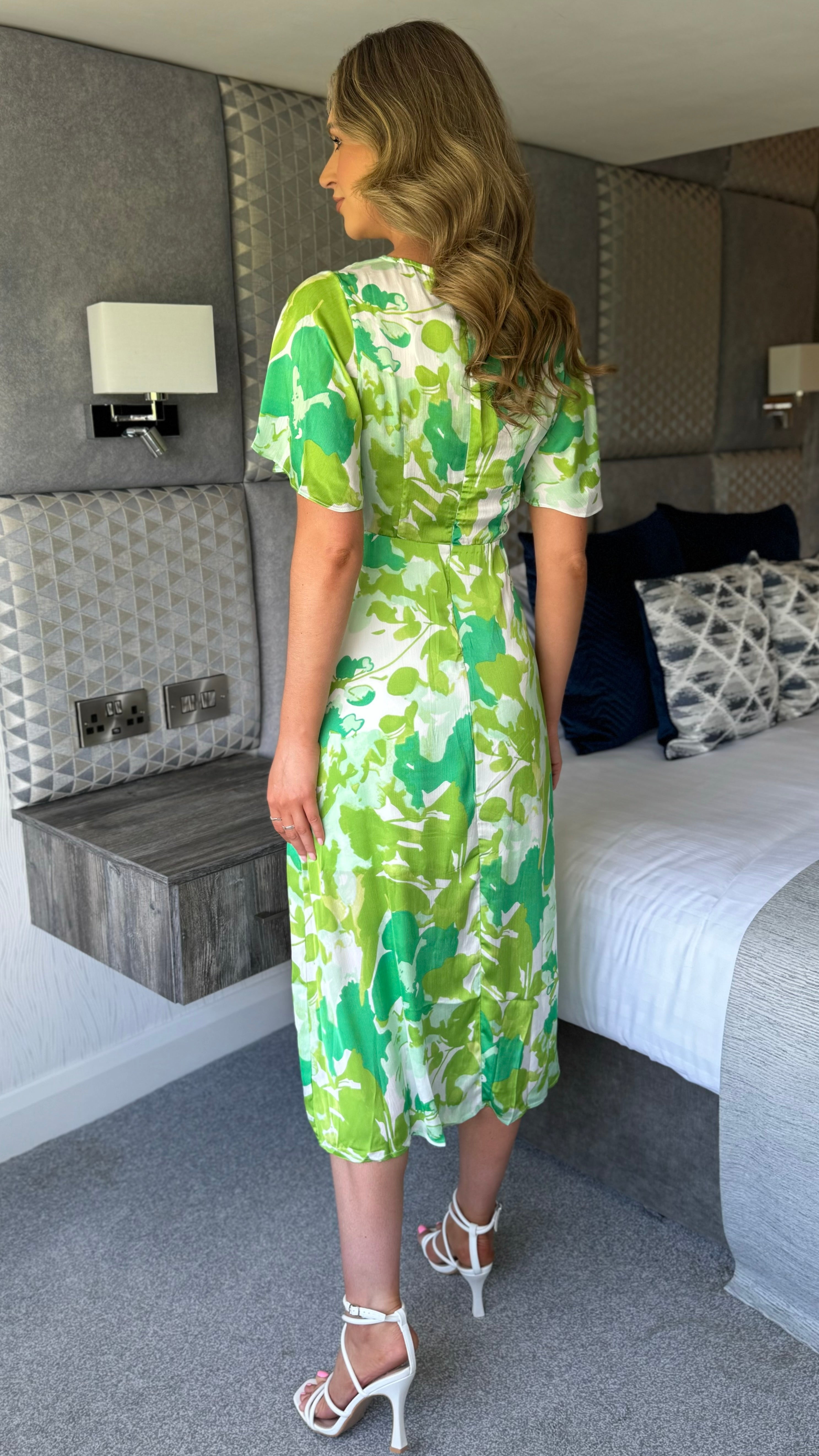 Bridgeen Green Leaf Angel Sleeve Split Leg Midi Dress