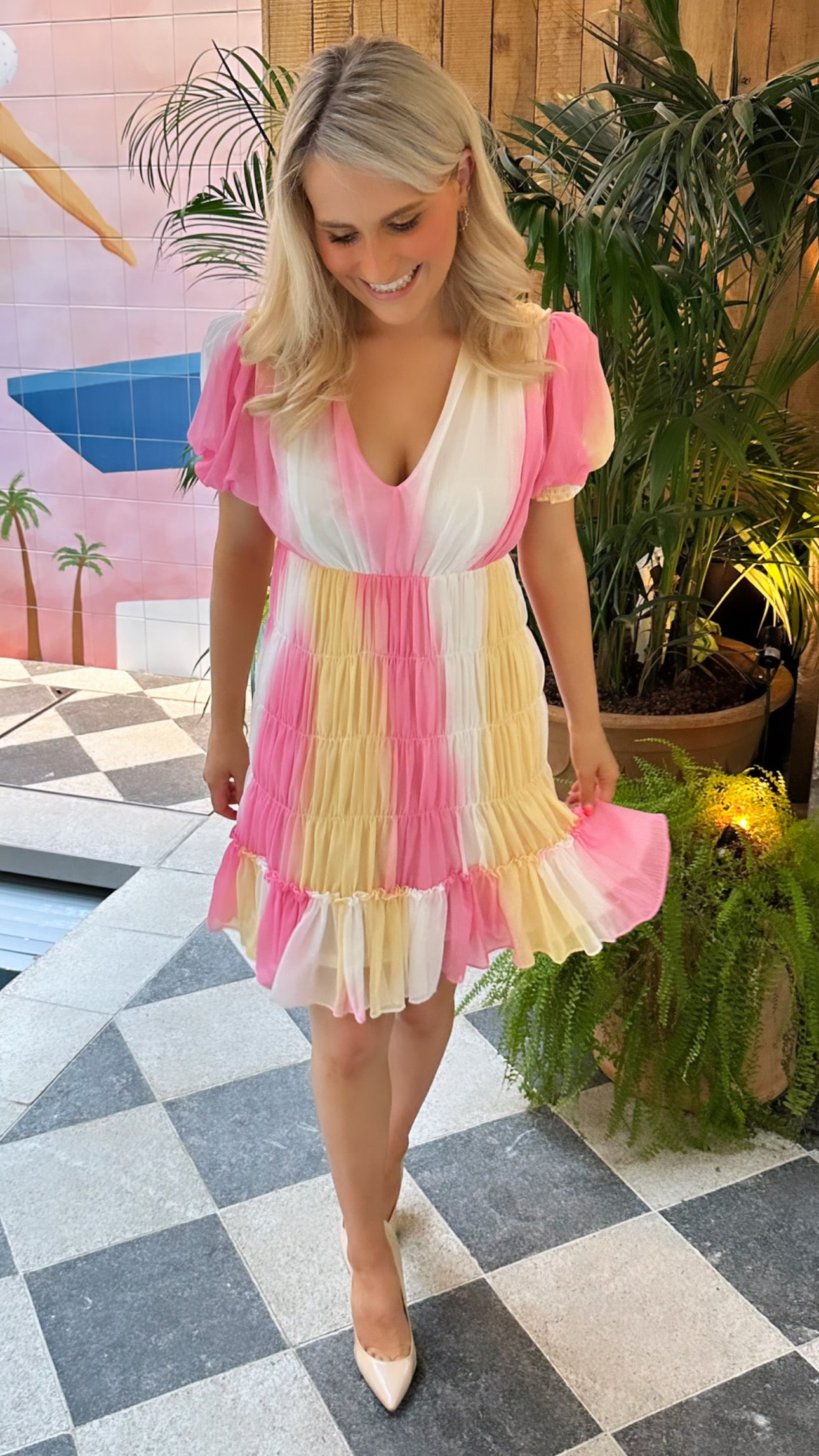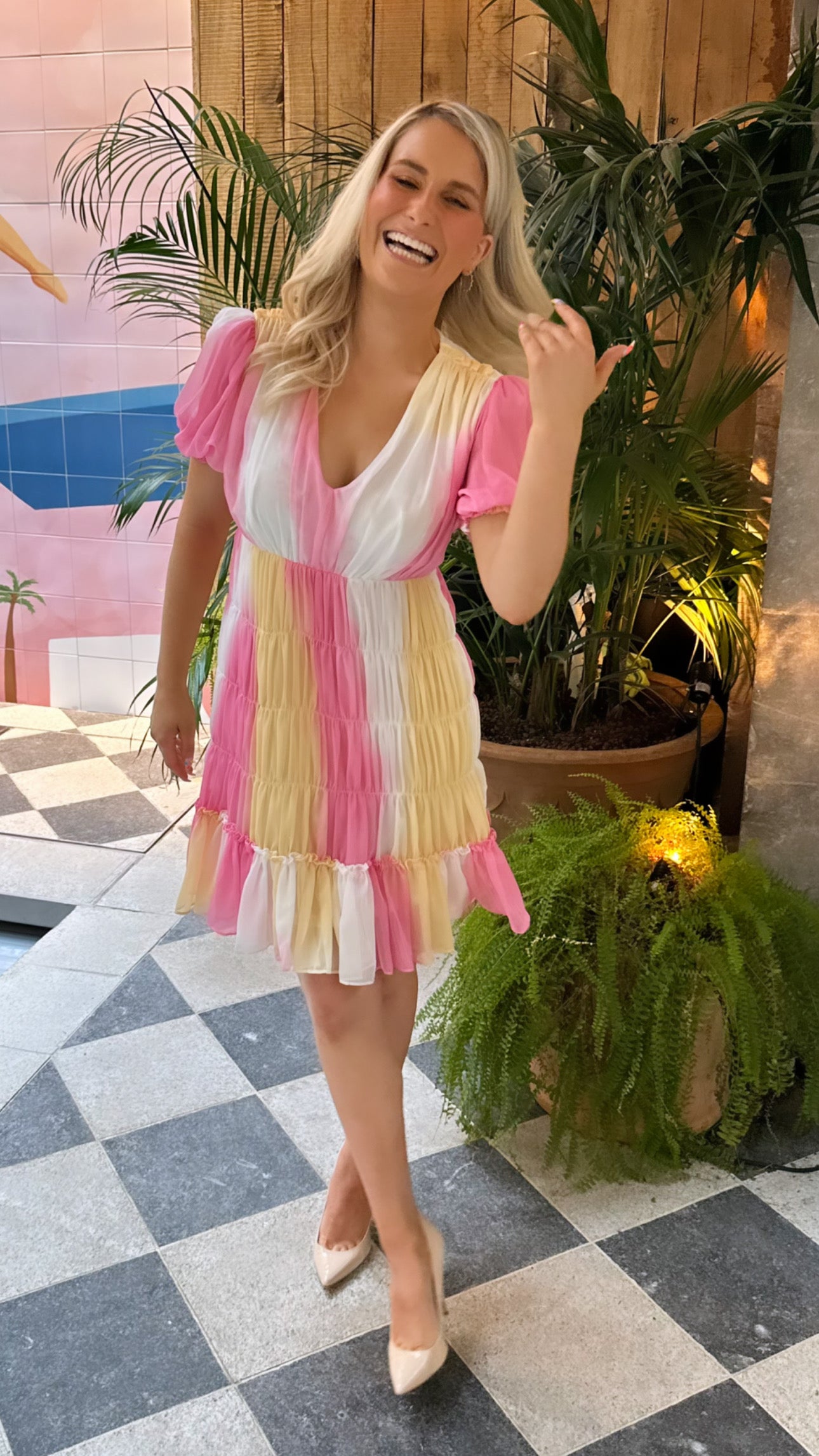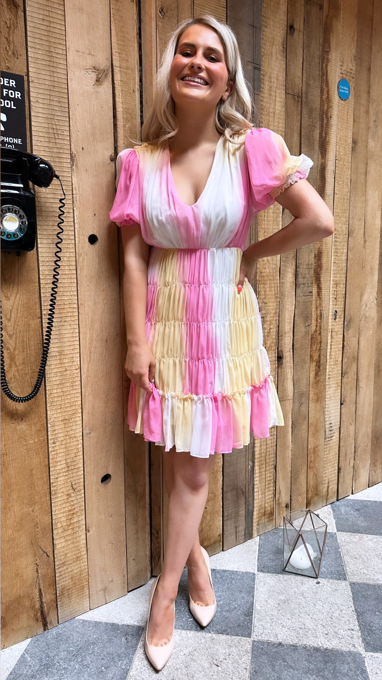 Campbell Pink & Yellow Puff Sleeve Mini Dress