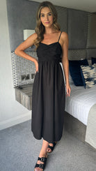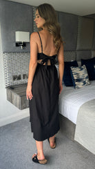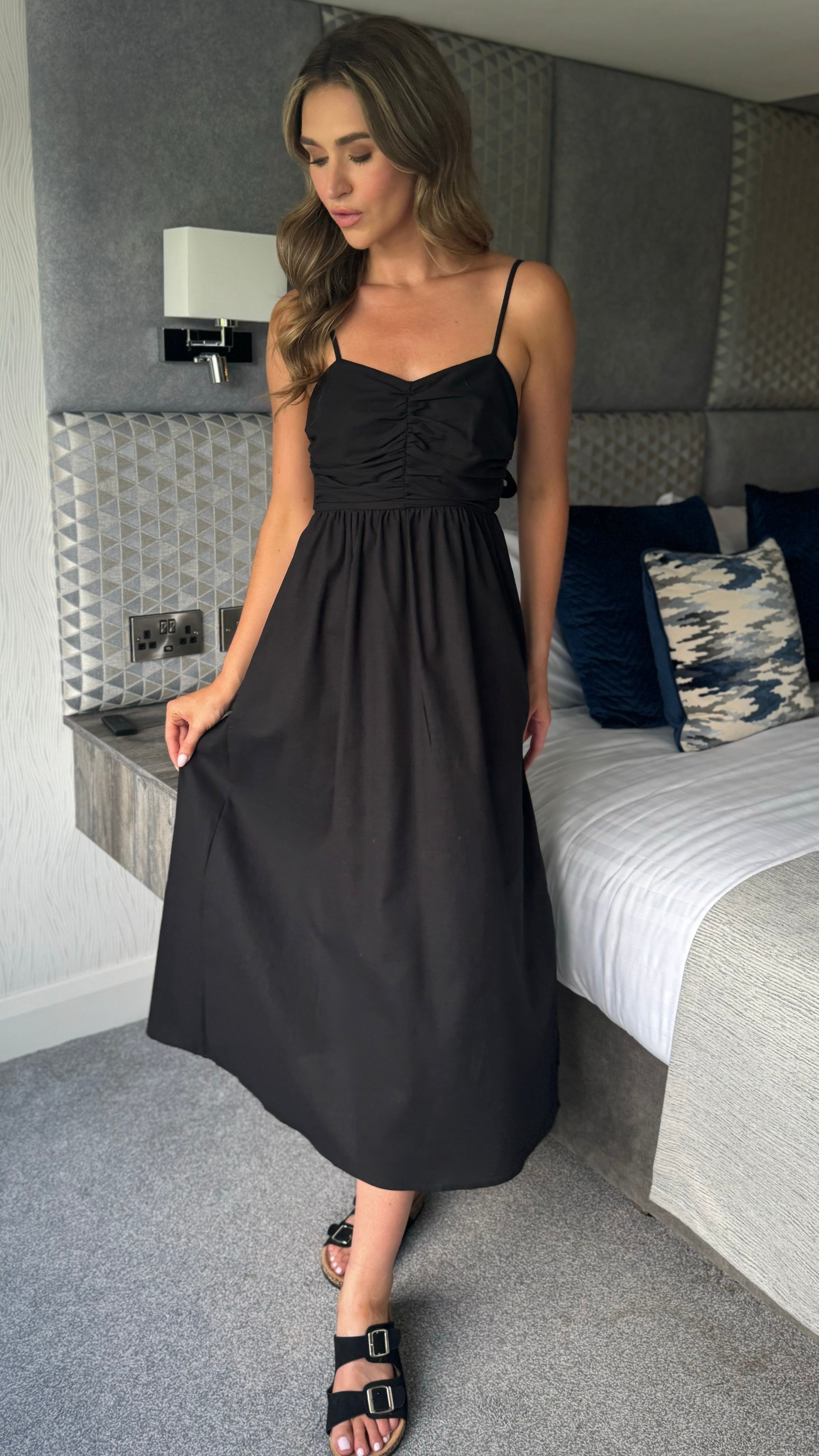 Cassidy Black Cami Strap Ruched Tie Back Detail Midi Dress