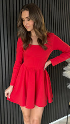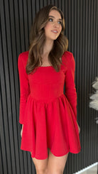 Get ready to turn heads in the Chloe Red Square Neck Skater Mini Dress! With a unique square neck and full skater style skirt, this dress is perfect for any occasion. The long sleeves and panel waist detail add a touch of elegance while still keeping things fun and playful. You'll feel confident and stylish in this one-of-a-kind dress!
