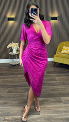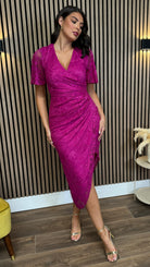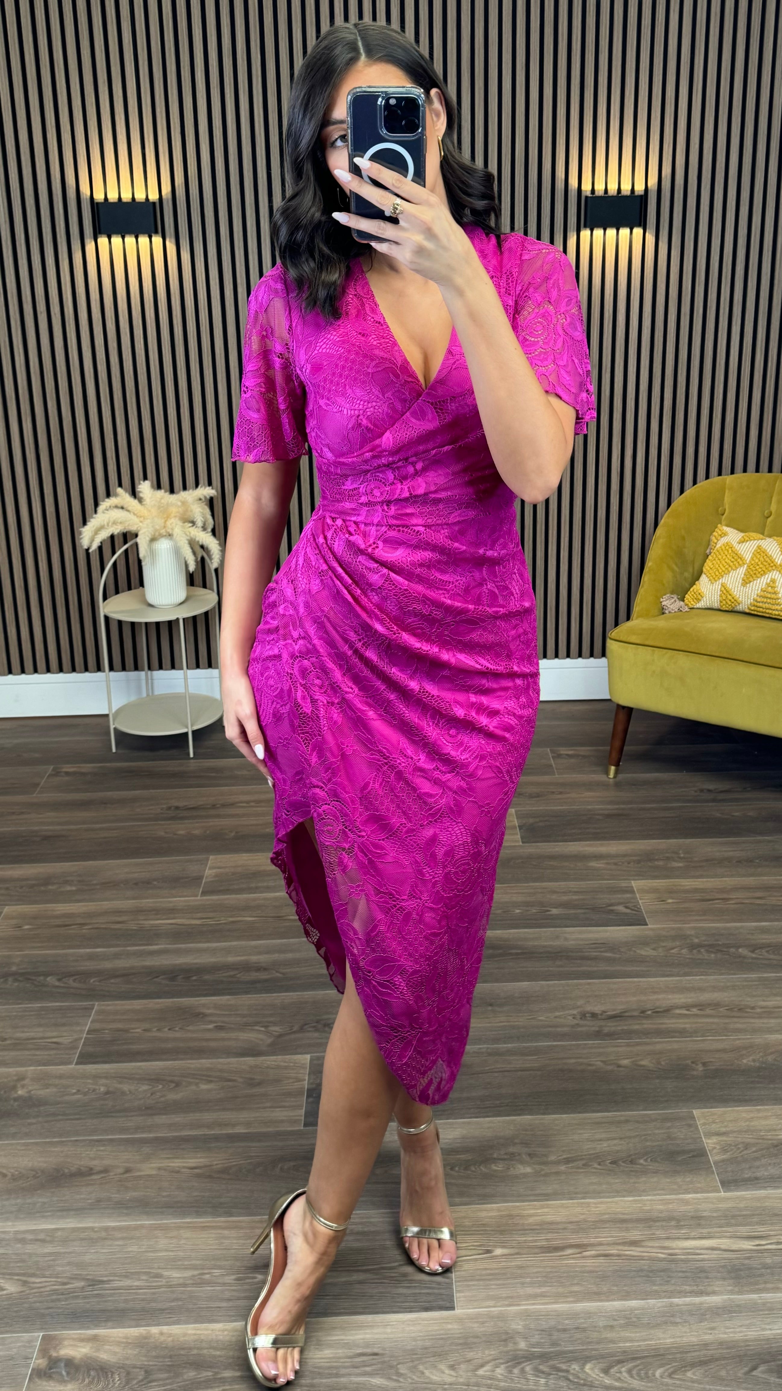 Make a statement in the Collins Dark Fuchsia Floral Lace Detail Ruched Midi Dress 🌸. This stunning dress features intricate floral lace and elegant ruching that flatters your figure, perfect for turning heads at any event. Its rich dark fuchsia hue adds a vibrant touch of sophistication, ensuring you feel confident and radiant all day or night ✨.
