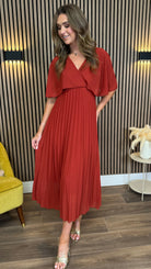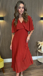 The Dahlia Rust V Neck Draped Sleeve Midaxi Dress offers a sophisticated silhouette with its elegant draped sleeves and flattering V neckline. The rich rust colour adds warmth and charm, making it ideal for refined occasions or stylish everyday wear. Perfectly balanced between comfort and grace, this dress is a timeless wardrobe essential. 🍂✨