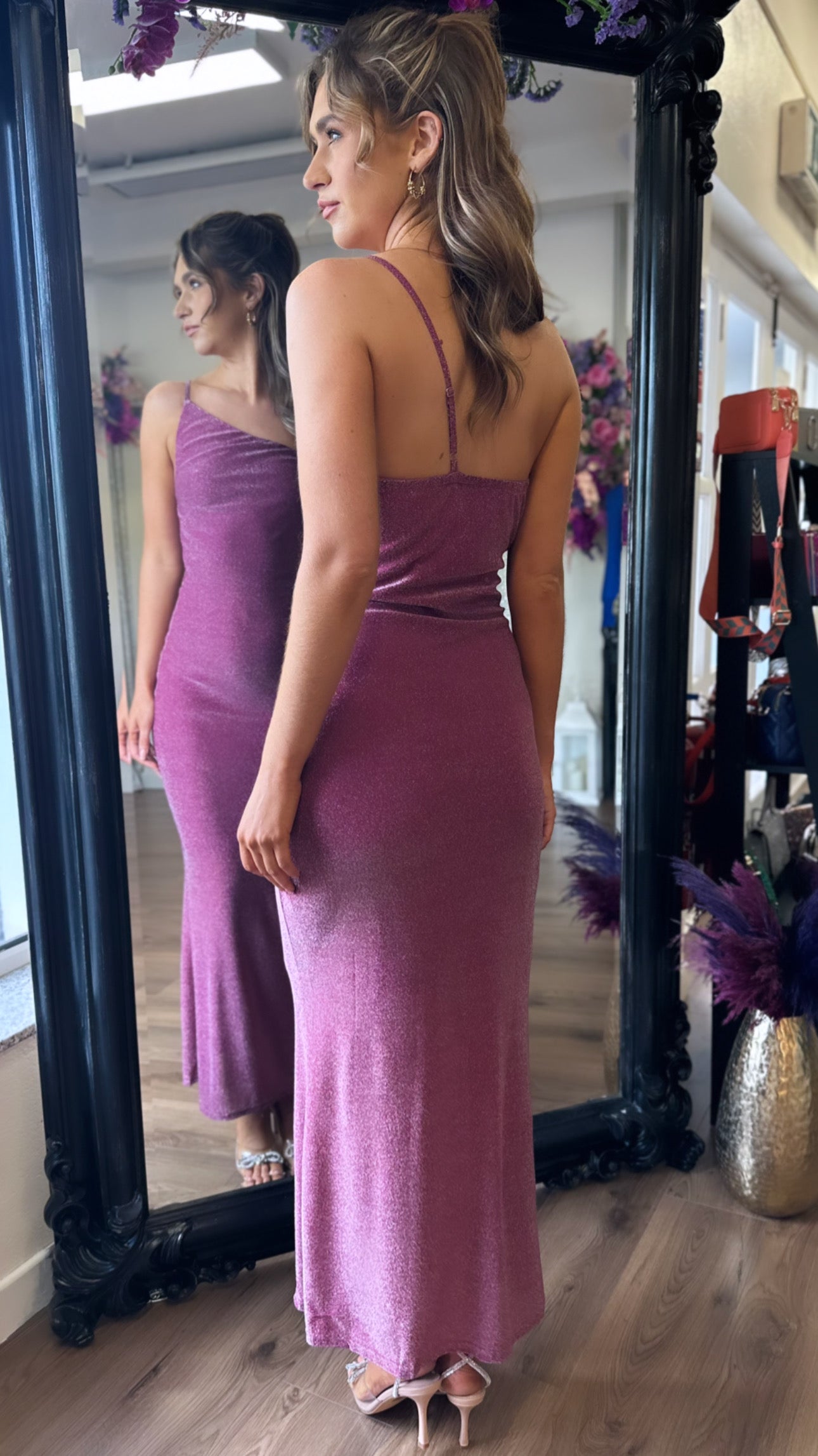 Lilith Purple Lurex One Shoulder Maxi Dress
