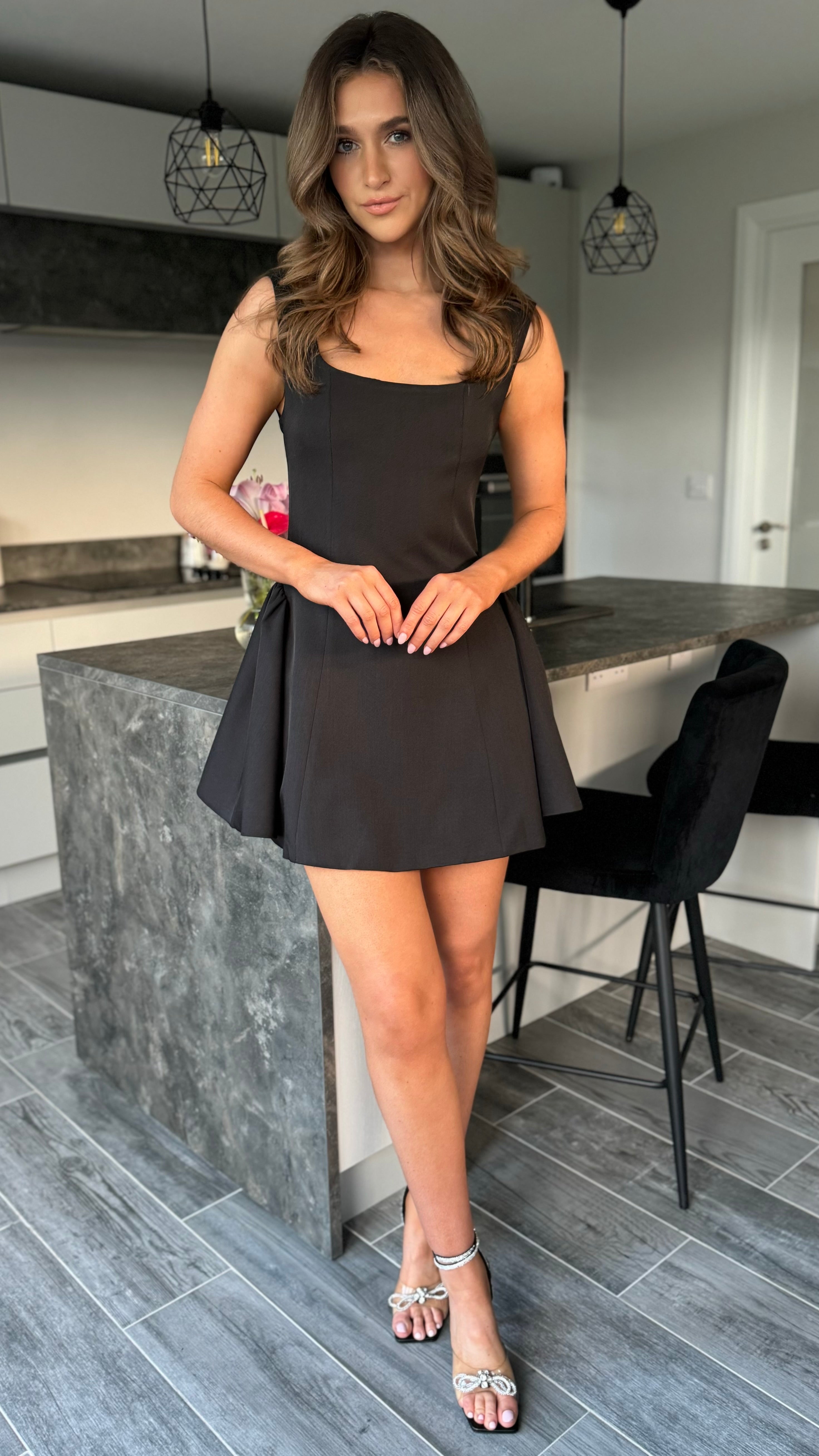 Finn Black Square Neck Skater Mini Dress