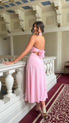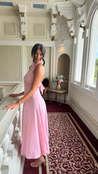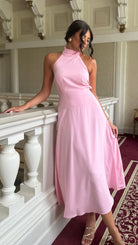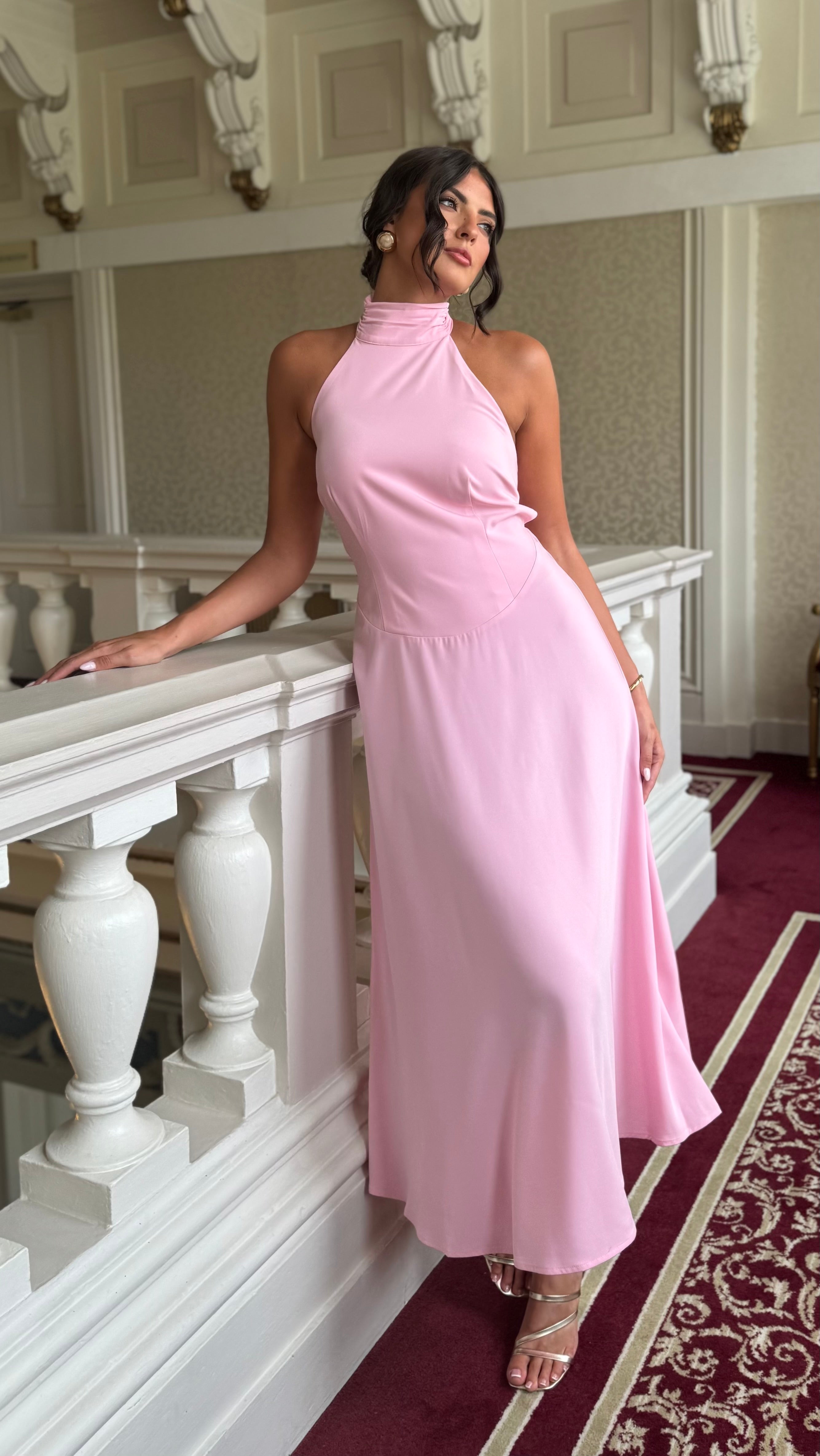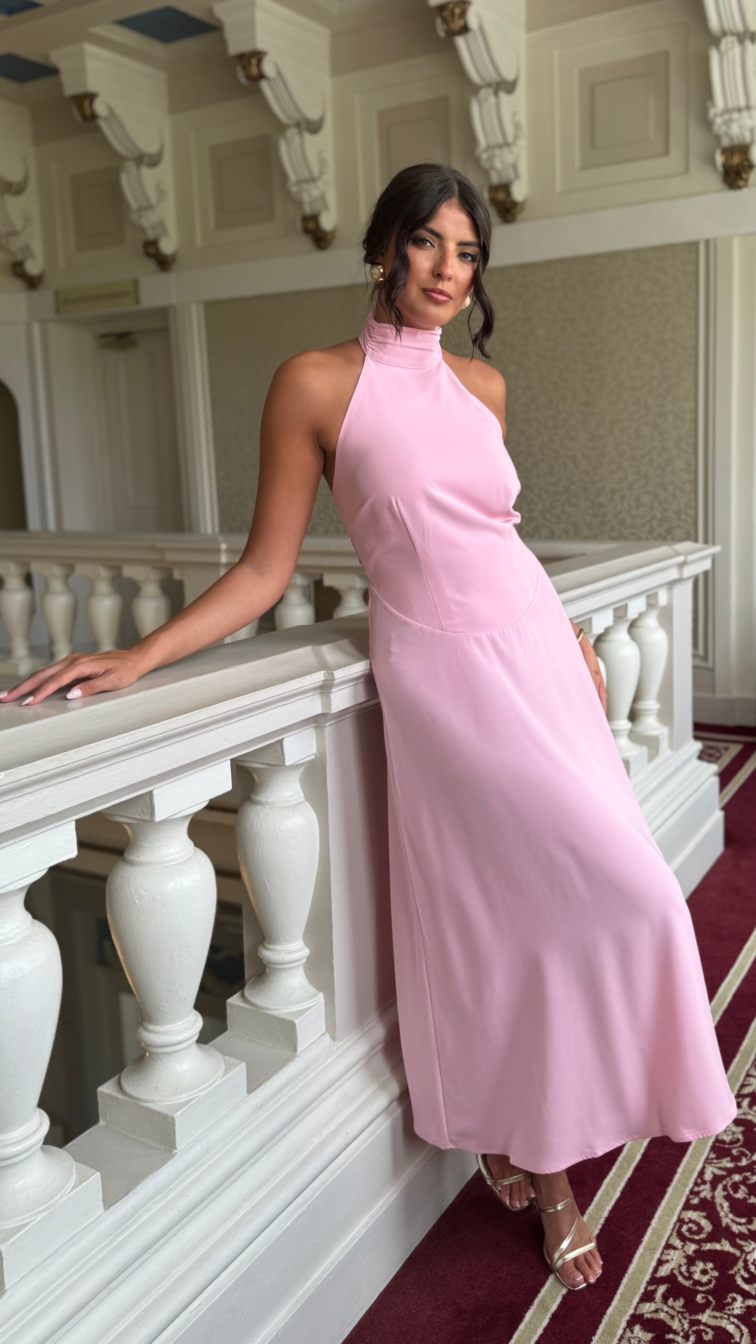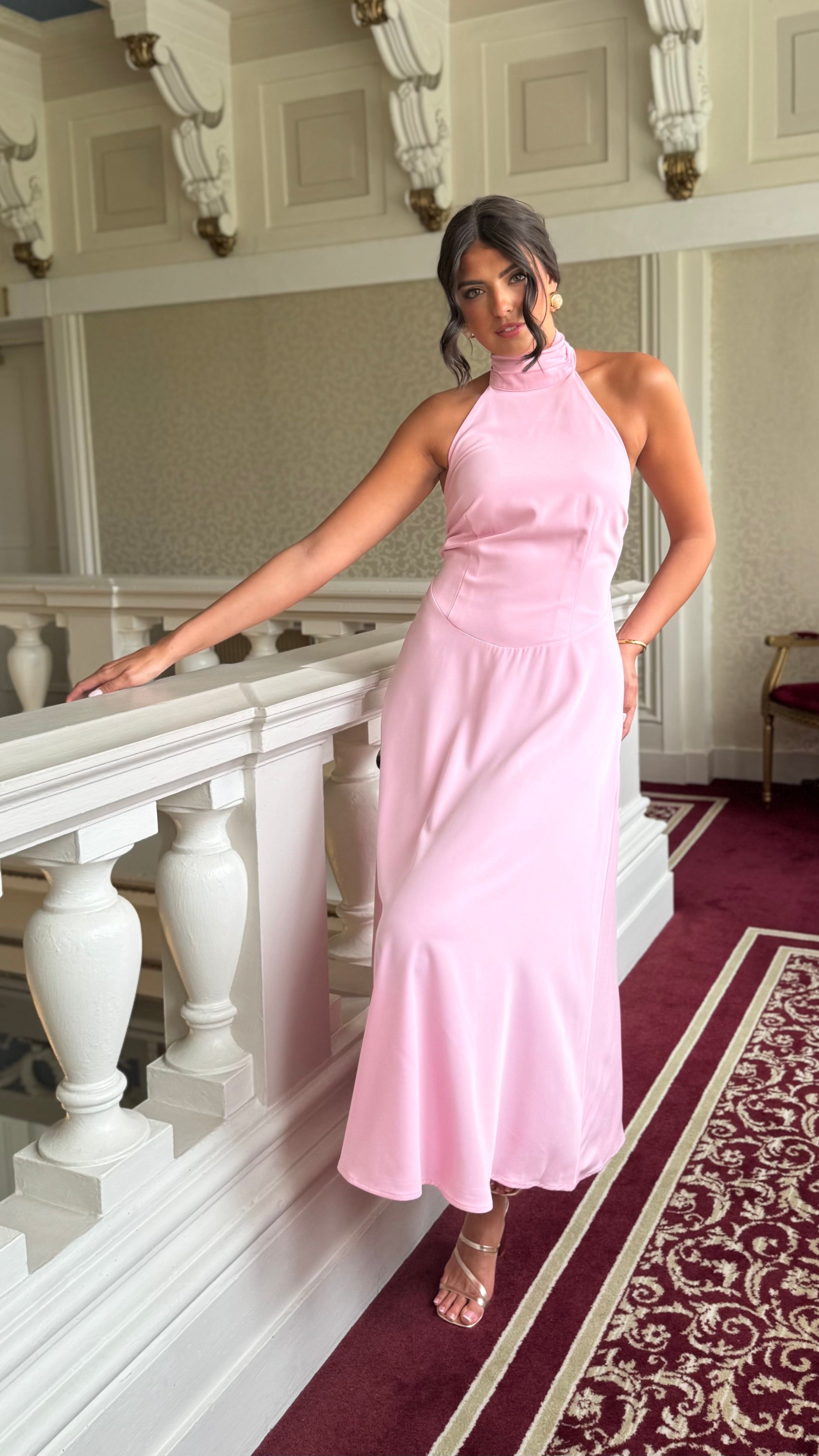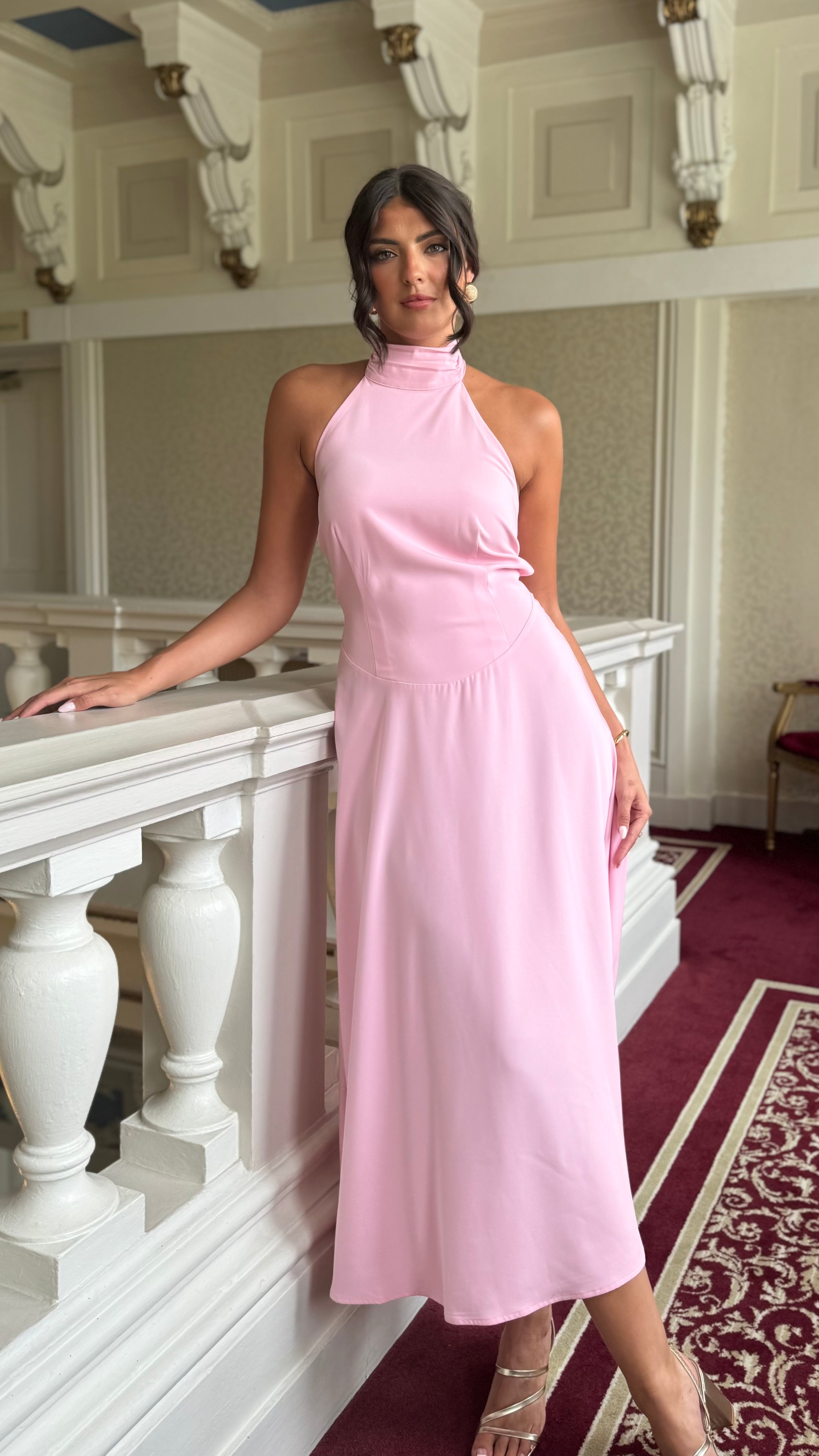 Haisley Pink Halterneck Tie Detail Midaxi Dress