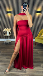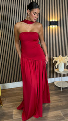 The Haisley Red Strapless Asymmetrical Midaxi Dress offers a refined blend of classic elegance and modern design. Featuring a striking red colour and a flattering strapless neckline, this dress is enhanced by an asymmetrical hem that adds a subtle yet stylish twist. Ideal for formal events or upscale gatherings, it ensures a poised and confident look with every wear.