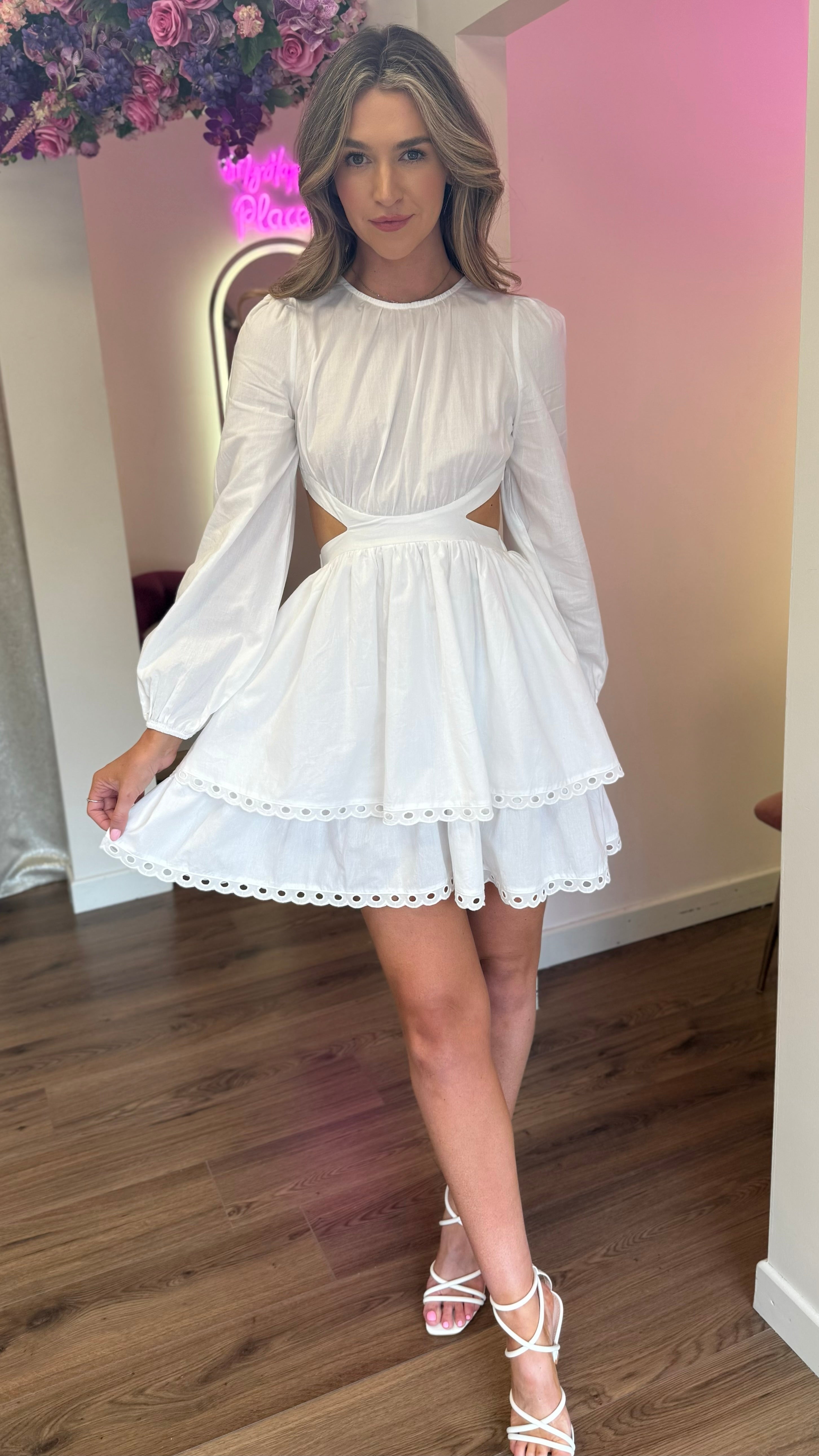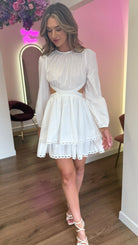 Helena White Broderie Detail Back Cut Out Mini Dress