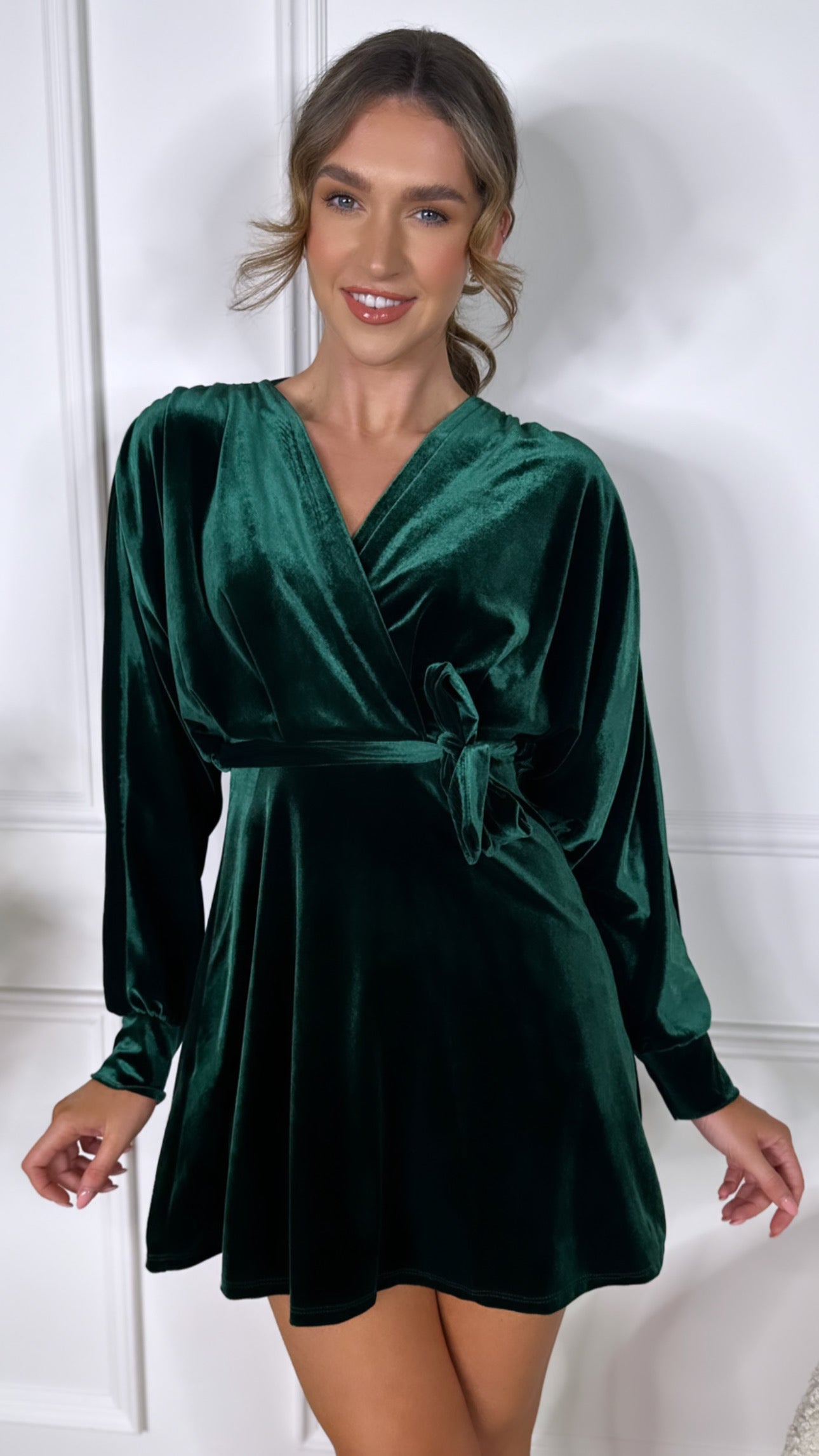 This Izzie mini dress is all wrapped up and ready to go! From the wrap detail to the fitted cuffs, this statement dress is perfect for a night out or a romantic evening. The elasticated waistband and tie detail cinch in the outfit, while the skater style is equal parts fun and flirty. Let the good times roll!