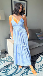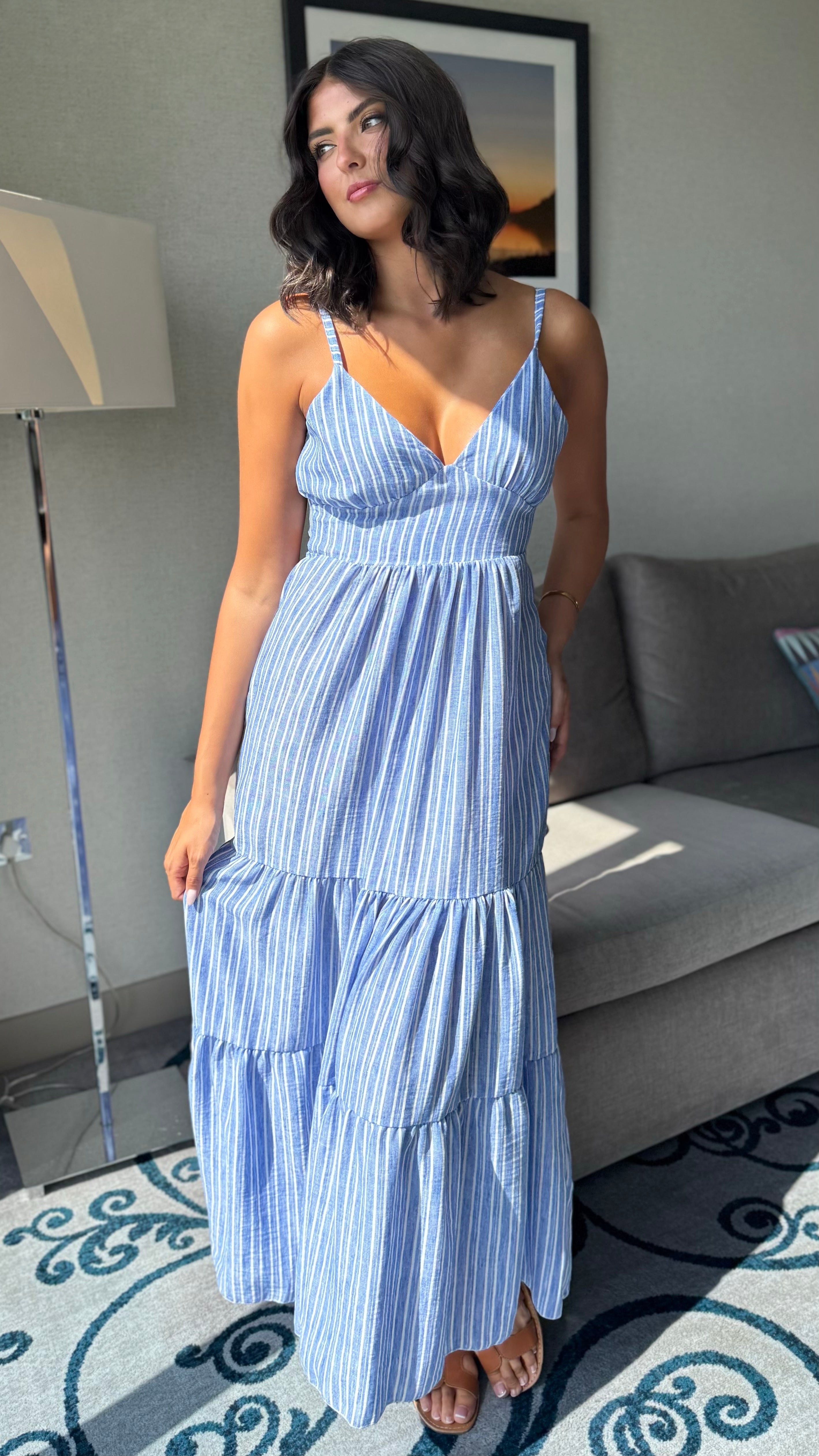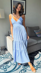 Keily Blue & White Pinstripe Cami Strap Midi Dress