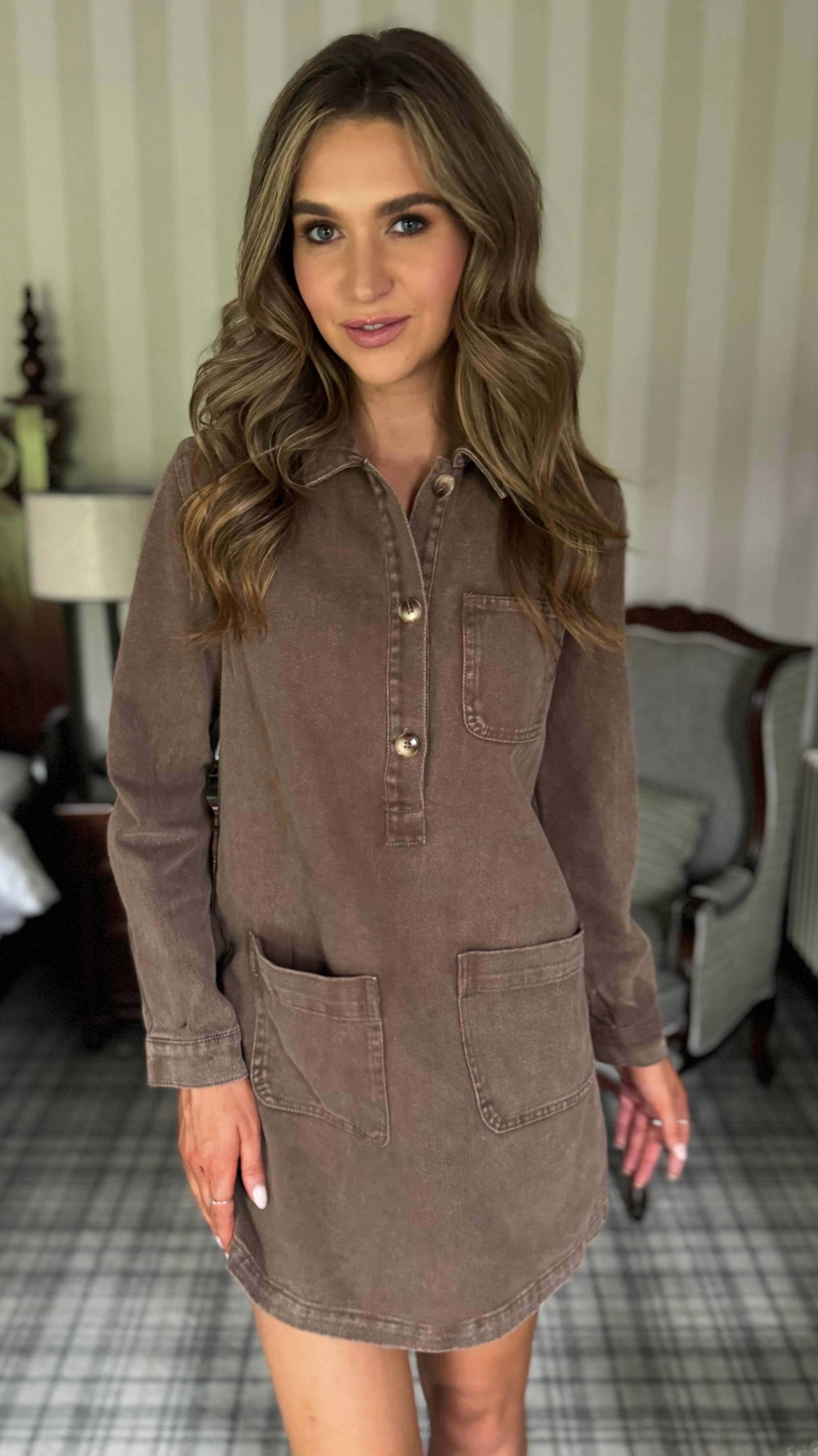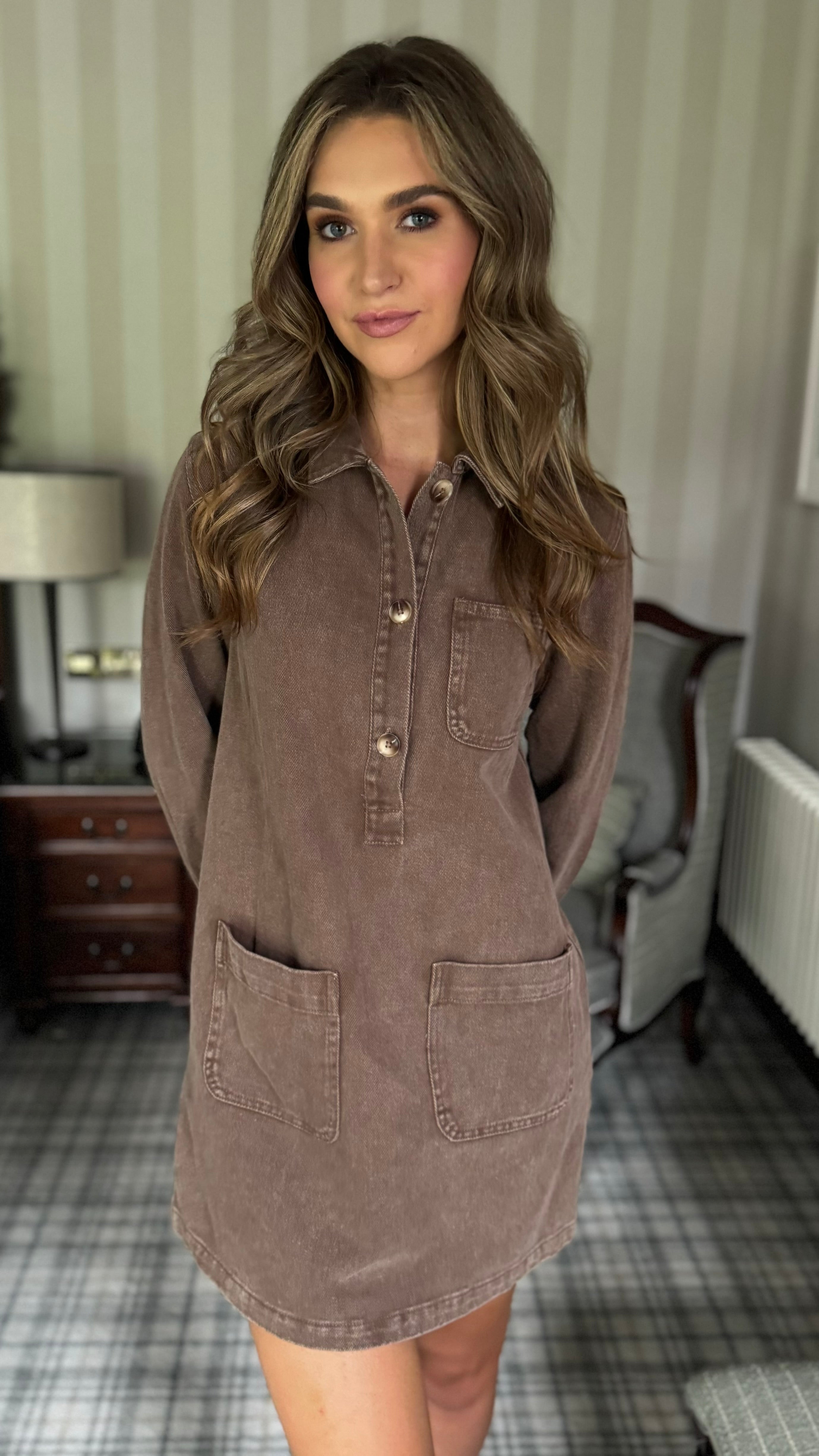 Get ready to turn heads with the Kenna Brown Denim Long Sleeve Mini Dress! This playful dress blends classic denim with a flirty mini cut and cosy long sleeves, perfect for adding a fun twist to your everyday look. Pair it with your favourite shoes and let the good vibes roll! 🎉👗💫