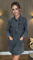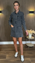 Step out in style with the Kenna Charcoal Grey Denim Long Sleeve Mini Dress! This playful piece mixes cool denim vibes with a flirty mini length and cosy long sleeves—perfect for turning heads wherever you go. Ready to add a little fun to your wardrobe? 💃🖤