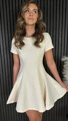 Kitty Beige Embellished Neckline Skater Mini Dress