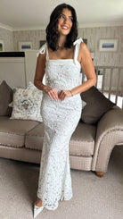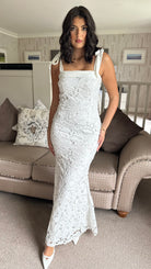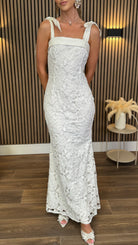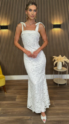 The Lena White Embroidered Floral Detail Tie Strap Midi Dress offers a refined blend of delicate craftsmanship and modern style. Featuring intricate floral embroidery and adjustable tie straps, this midi dress creates an elegant silhouette that enhances your natural grace. Ideal for sophisticated occasions, it combines subtle detailing with timeless appeal for a polished, graceful look.