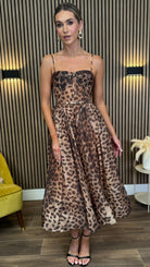 Lilia Cheetah Print Cami Strap Corset Detail Belted Cupped Midi Dress
