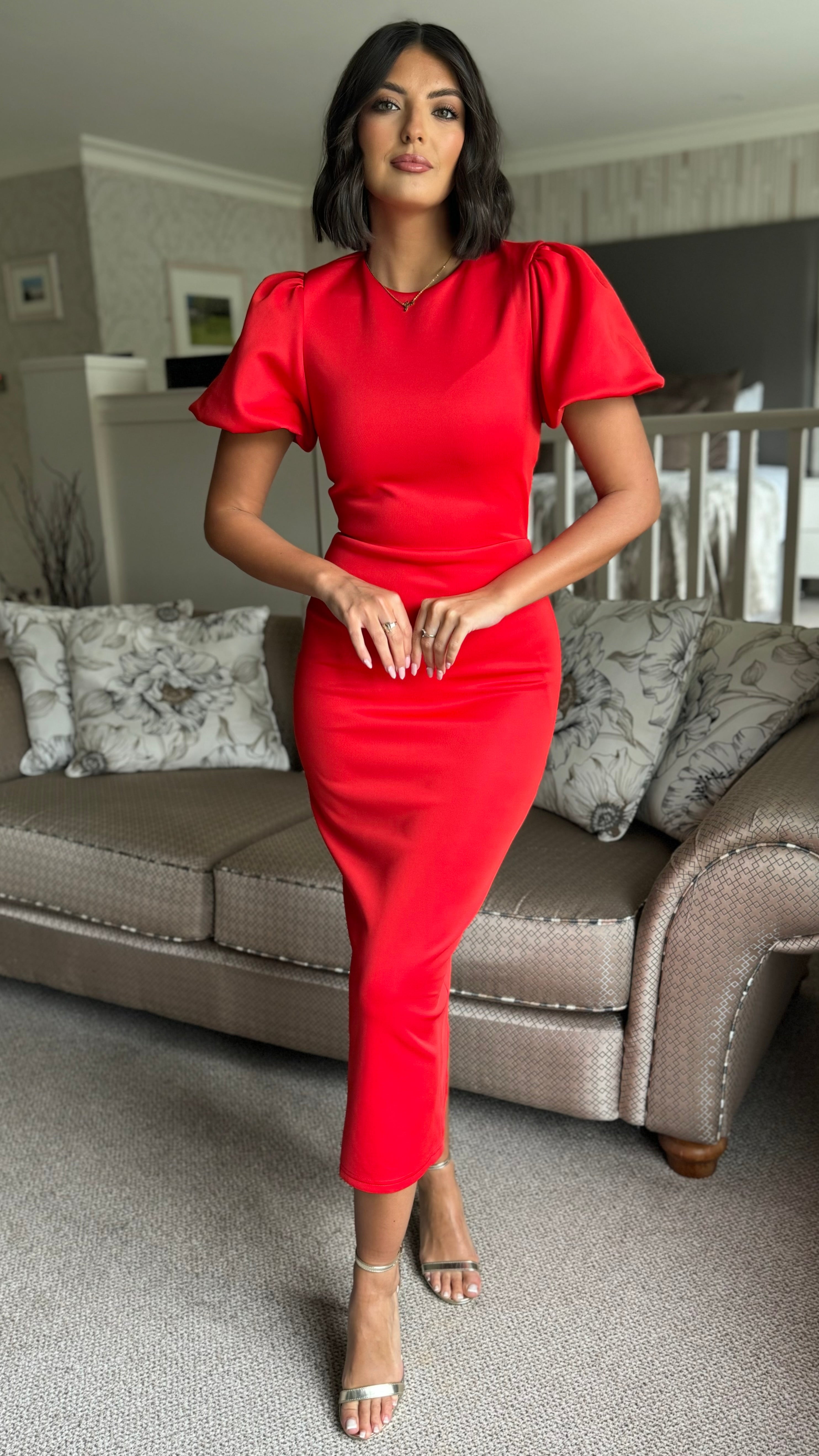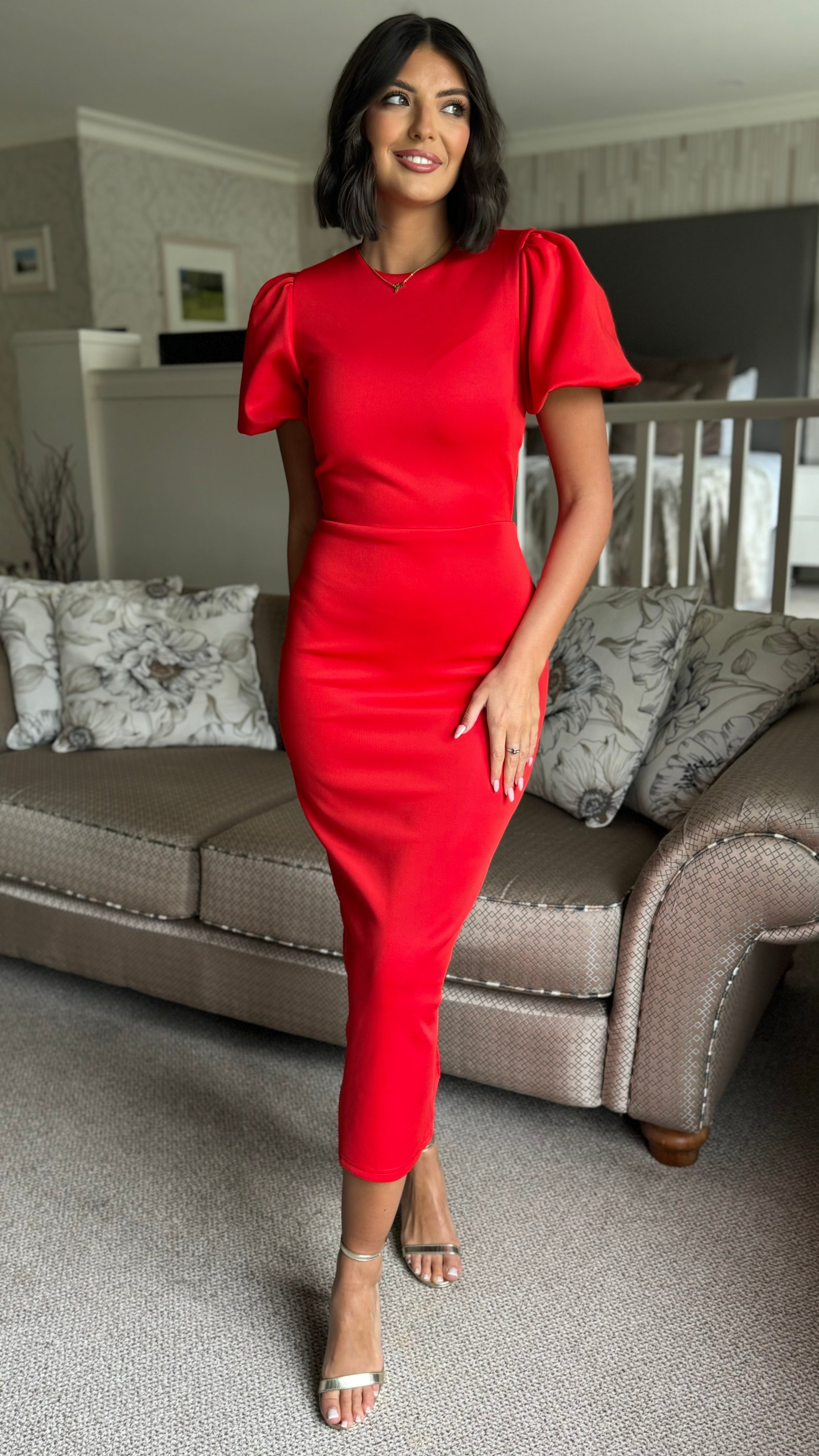 Elevate your everyday wardrobe with the Lorelei Midi Dress, a contemporary piece that balances structure with effortless elegance. Designed with a fitted silhouette that flatters the frame, this dress features romantic puff sleeves and a classic round neckline for a refined, polished look. The concealed zip fastening ensures a seamless finish, while the rich blood orange hue brings warmth and sophistication to any occasion. Perfect for transitional dressing, from office to evening, this midi dress is a versatile investment piece that works beautifully on its own or layered with your favourite blazer.