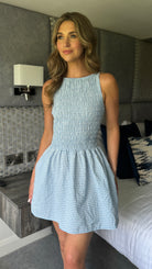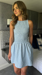 Lotta Blue Gingham Shirred Sleeveless Mini Dress