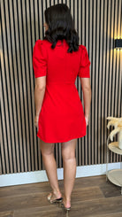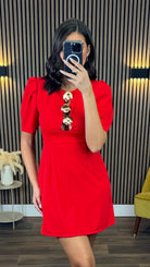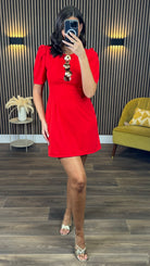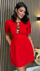 Luciana Red Puff Sleeve Seashell Detail Mini Dress