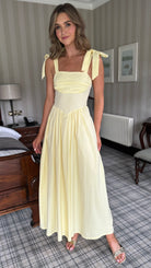 Brighten your collection with the Luellen Yellow Midaxi Dress, featuring delicate tie shoulder straps and a ruched bust that enhances your figure with subtle elegance. Its refined silhouette and vibrant colour make it an ideal choice for sophisticated occasions, blending comfort with timeless style. Perfect for making a graceful statement wherever you go. 🌟💛