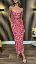 Embrace effortless elegance with the Marion Coral Floral Printed Strappy Backless Midi Dress. Its vibrant coral floral pattern and delicate strappy back create a captivating look that flatters every figure. The backless design adds a hint of allure, while the midi length ensures graceful movement. Perfect for garden parties, brunches, or summer evenings, this dress will make you feel confident and radiant wherever you go.