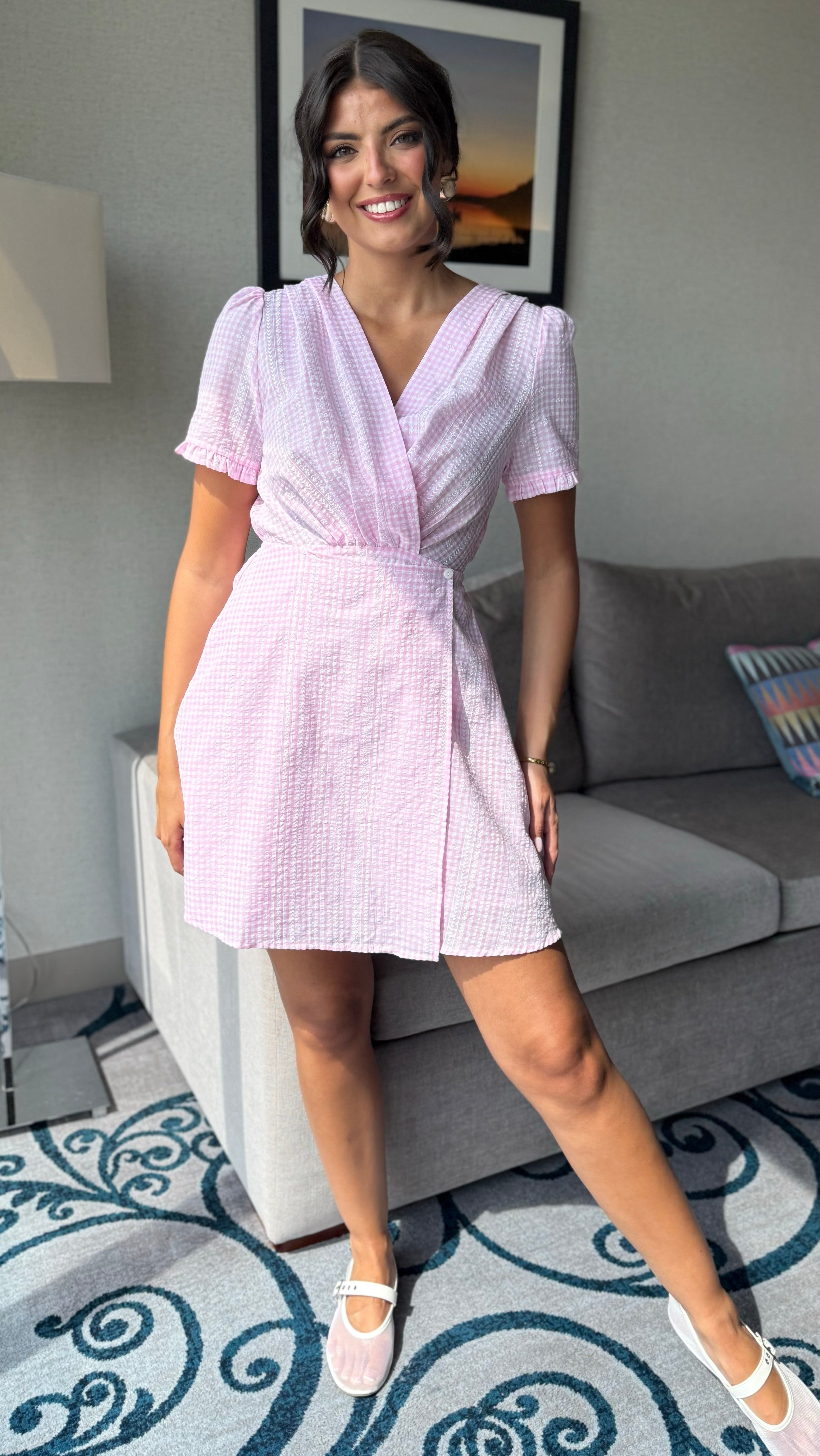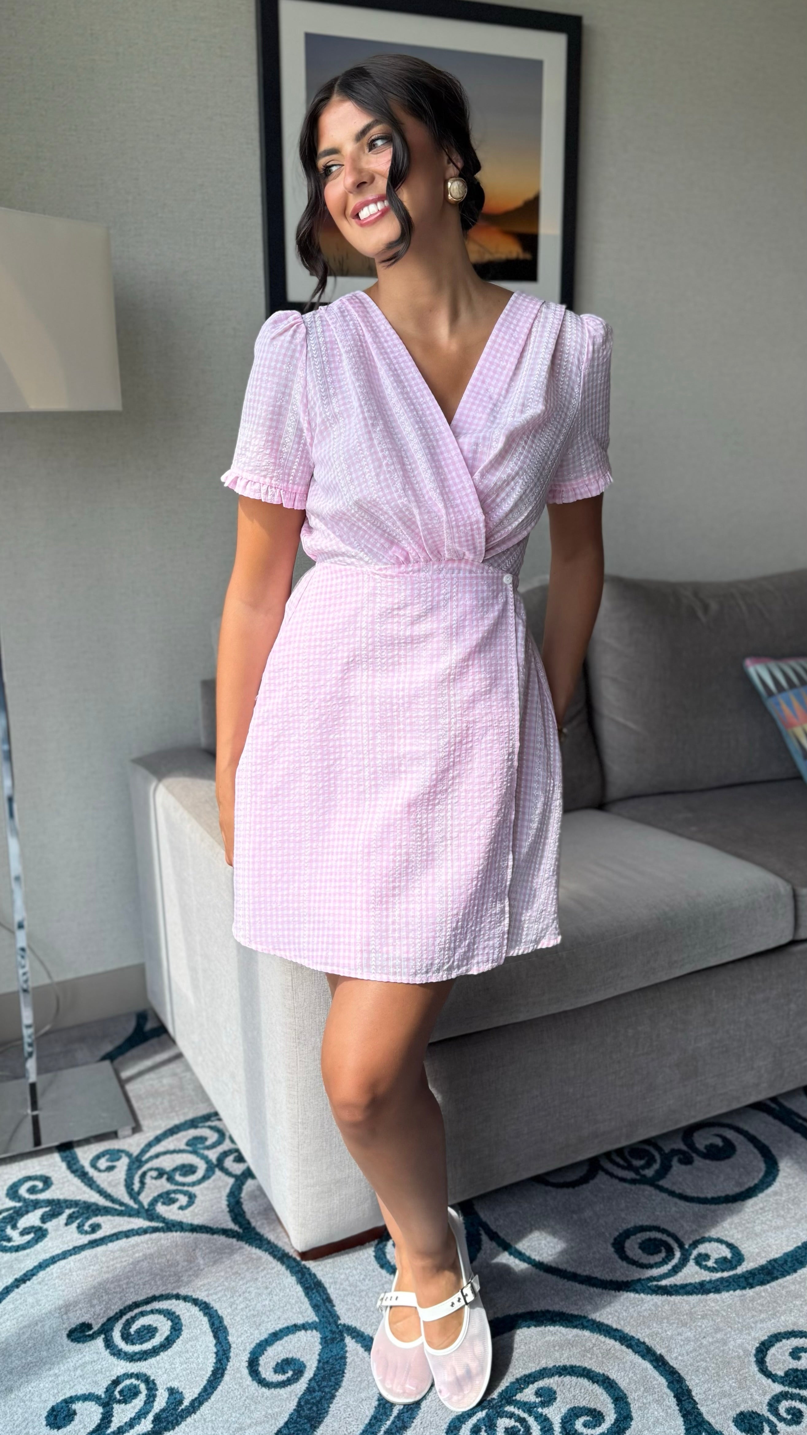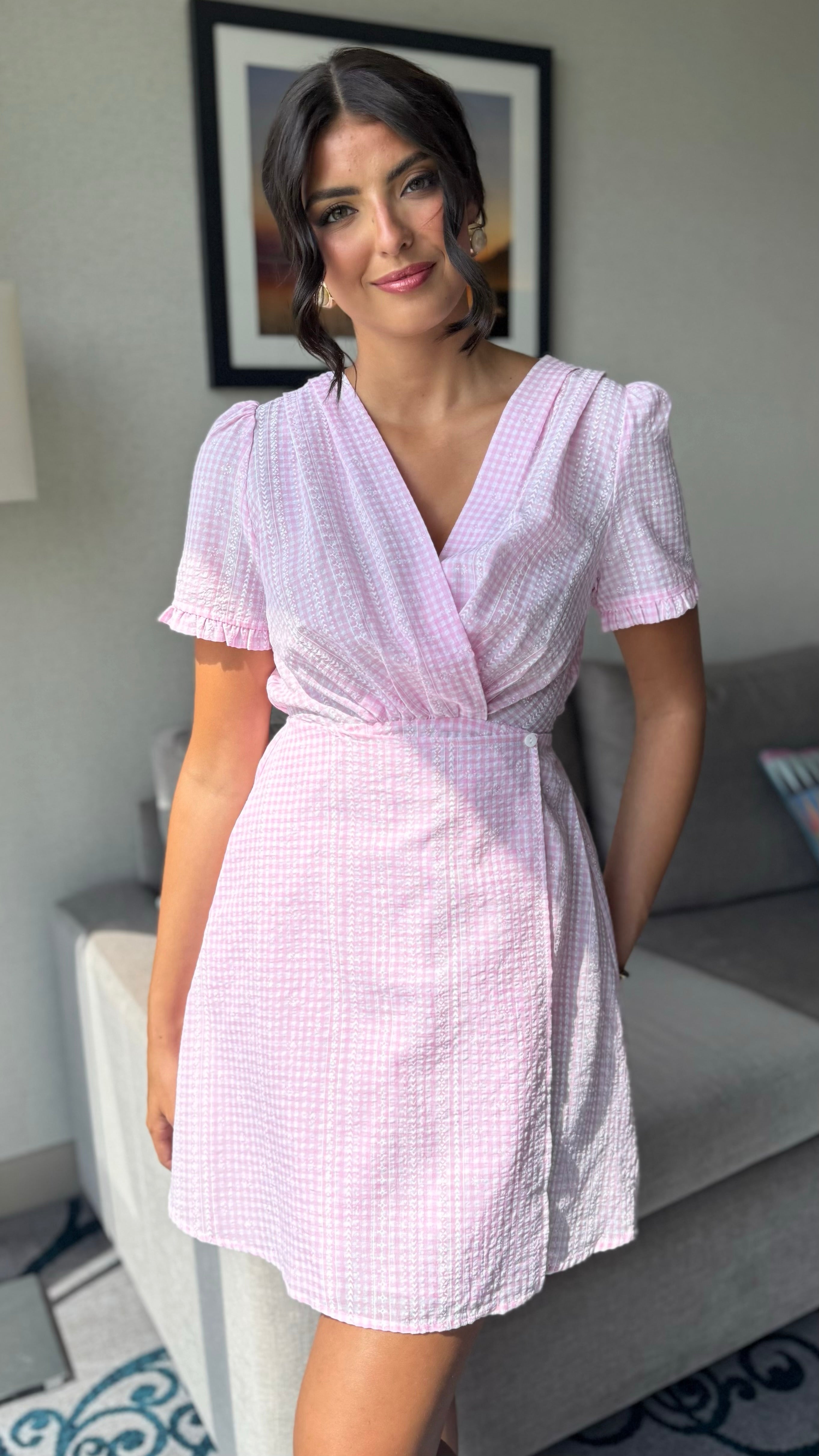 Add a splash of sweetness to your wardrobe with the Noa Pink Gingham Frill Sleeve Skater Mini Dress! Featuring cute frill sleeves and a flirty skater silhouette, this dress is perfect for twirling through sunny days and fun nights. The classic pink gingham pattern brings a fresh, playful vibe that’s sure to turn heads. Ready to sparkle and shine? This dress has got you covered! 🌷🎀✨