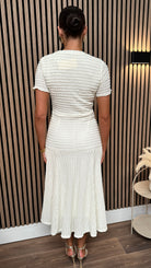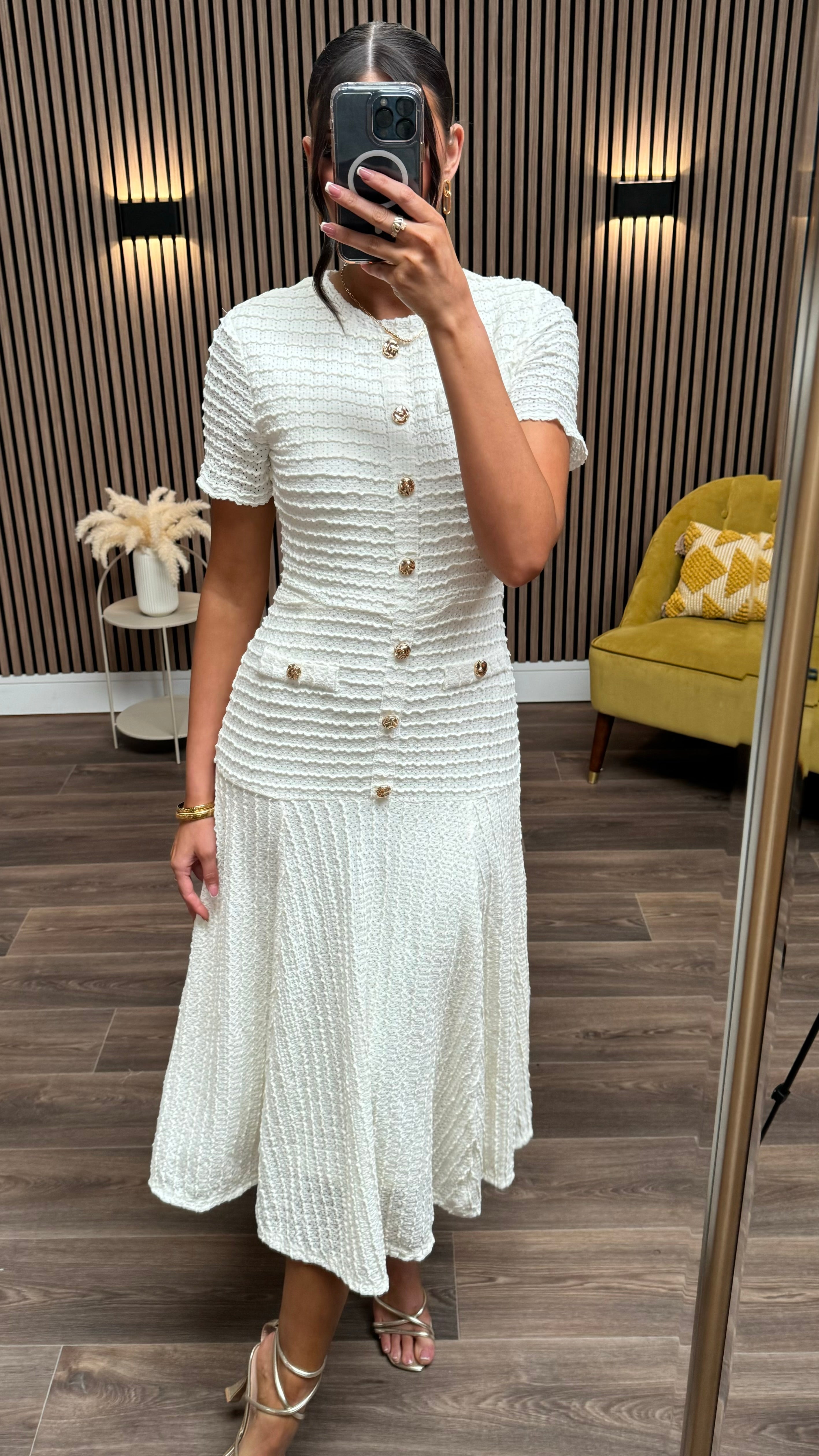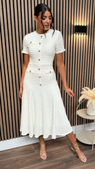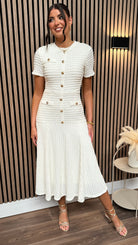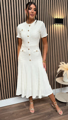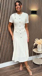 Phil Cream Textured Button Detail Midi Dress