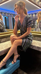 Poe Multi Stripe Sequin Wrap Midi Dress