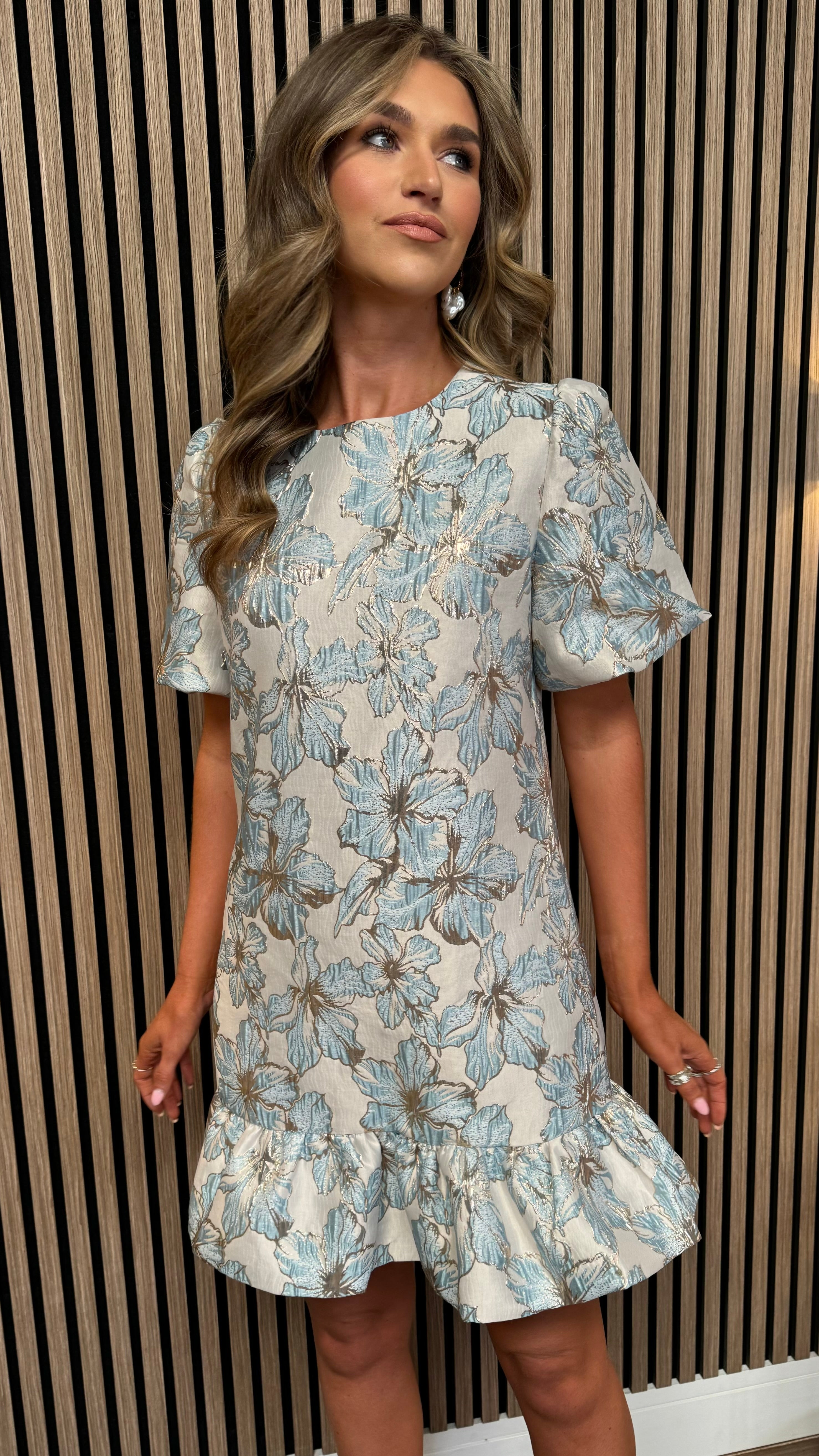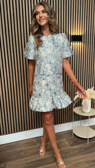 Elevate your wardrobe with our Polly Mini Dress, where delicate beige and blue floral patterns create a refined aesthetic. The elegant puff sleeves add a touch of vintage-inspired charm, while the mini length offers a contemporary silhouette.