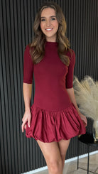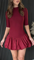 Get ready to make a statement in this Rebecca Burgundy High Neck Mini Dress! With its high neck and 1/2 sleeves, this dress brings a touch of elegance to any occasion. The puff style skirt adds a fun twist, making you stand out in the crowd. Perfect for those who love to mix sophistication with a little bit of playful flair!