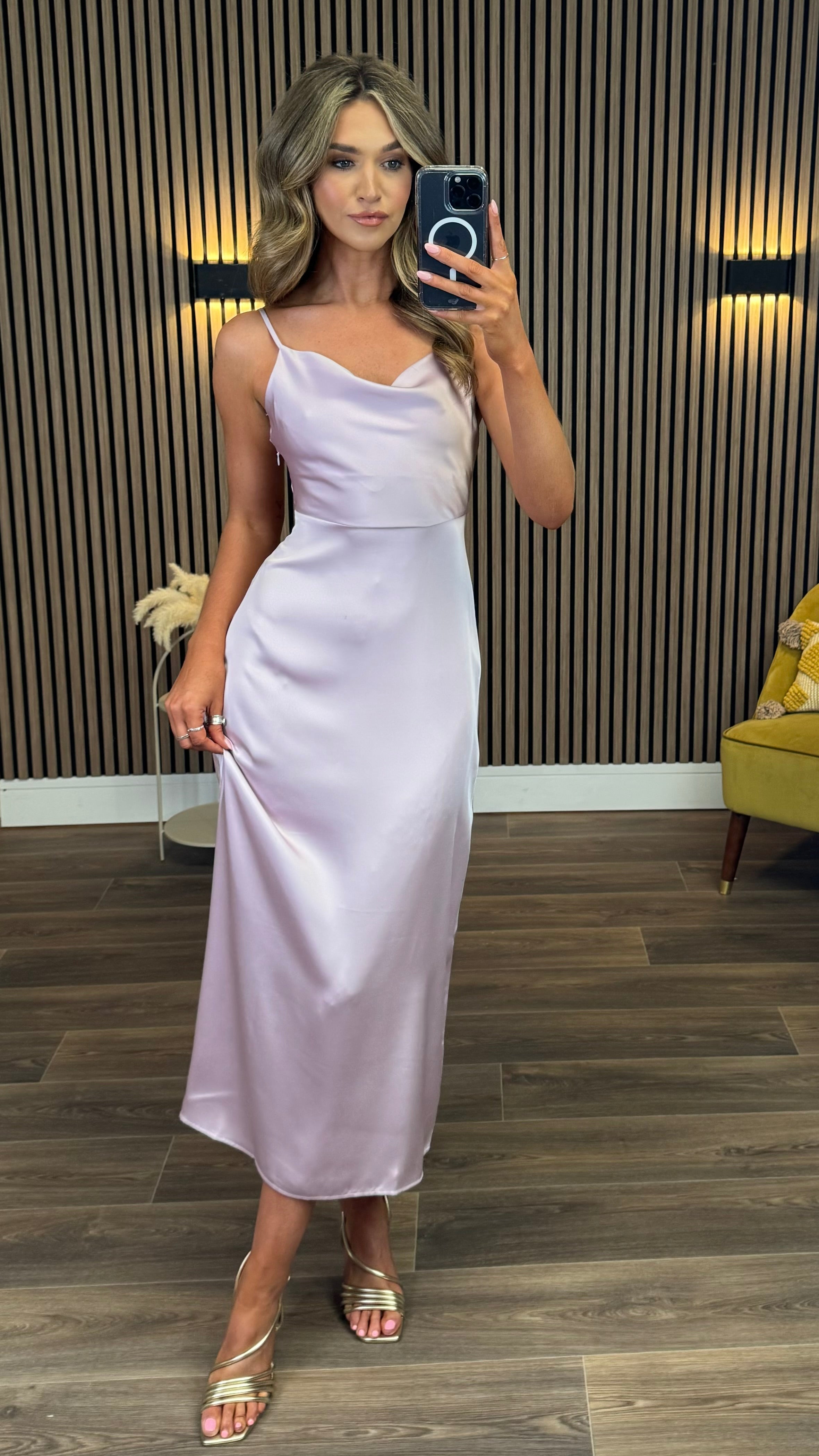 Rosaleen Lilac Satin Cowl Neck Maxi Dress