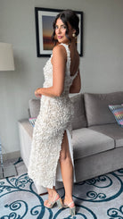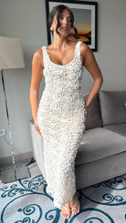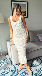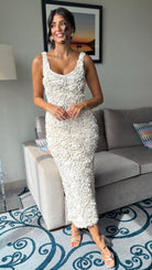 Indulge in elegance with our Rose Beige Floral Detail Midi Dress. This stunning piece features intricate floral detailing and a tasteful midi length, perfect for any occasion. Embrace sophistication and elevate your style with this luxurious dress.