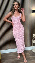 Rose Pink Floral Detail Midi Dress