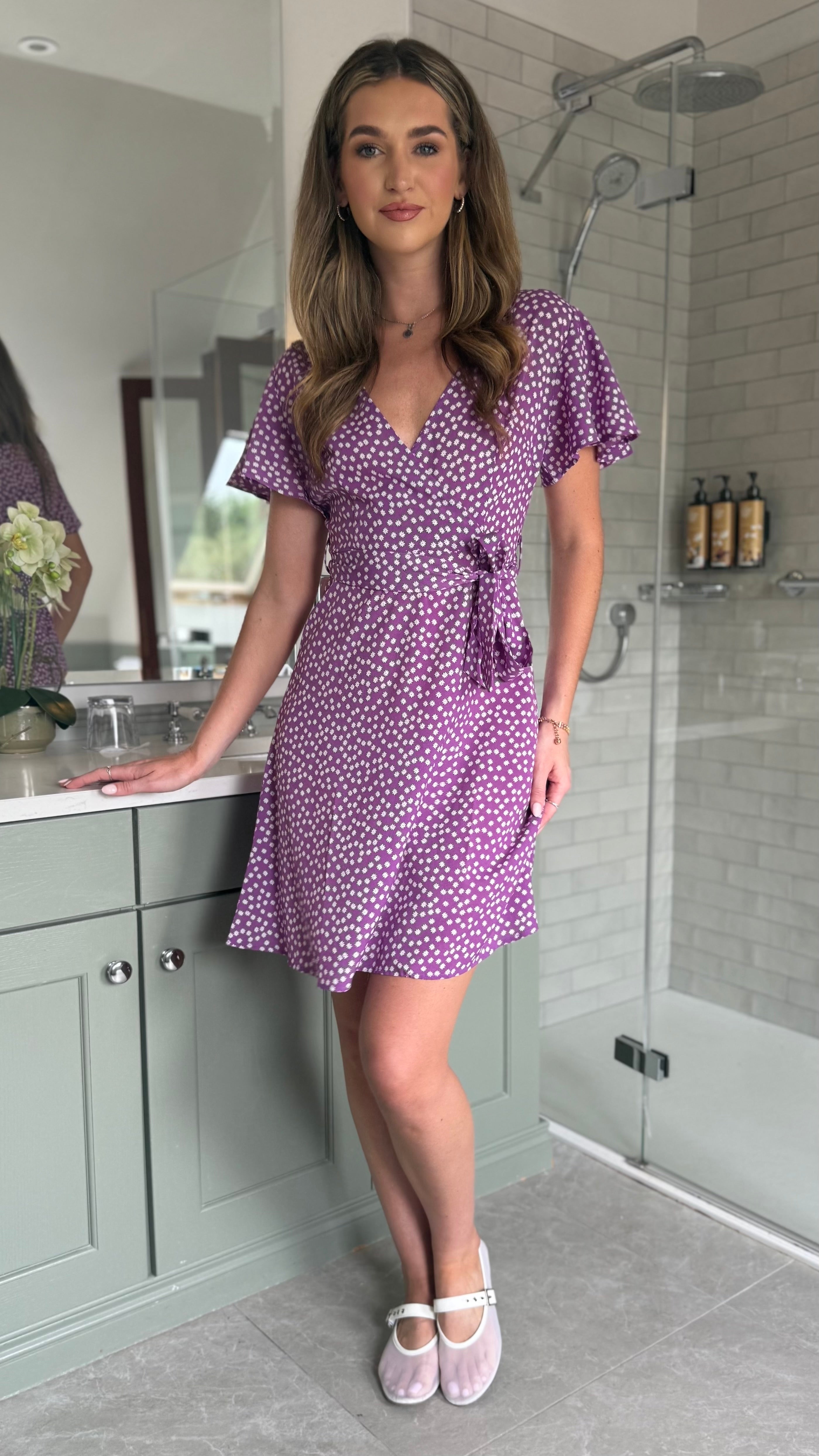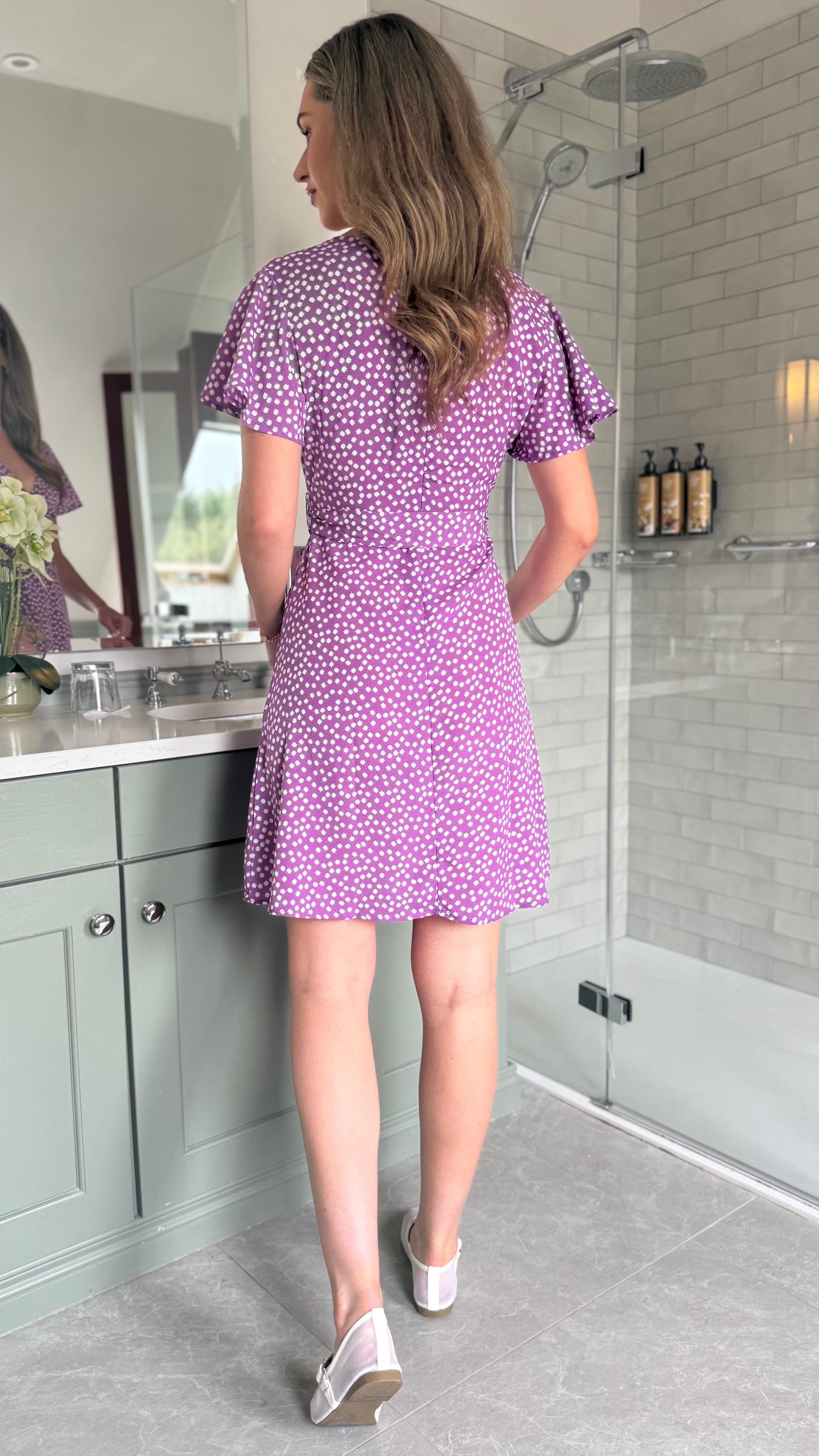 Rowyn Purple Ditsy Floral Tie Detail Skater Dress