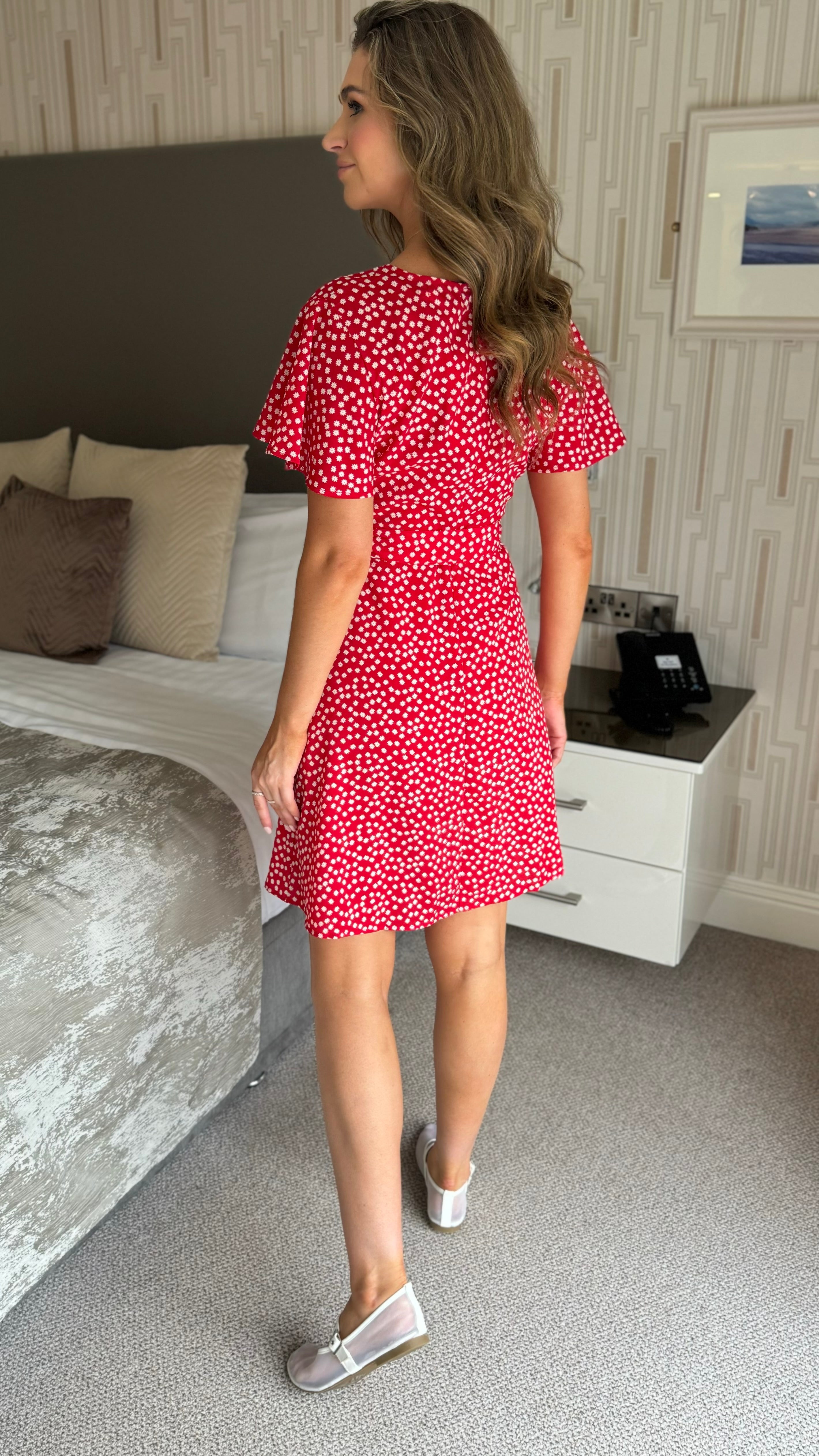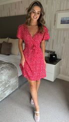 Rowyn Red Ditsy Floral Tie Detail Skater Dress