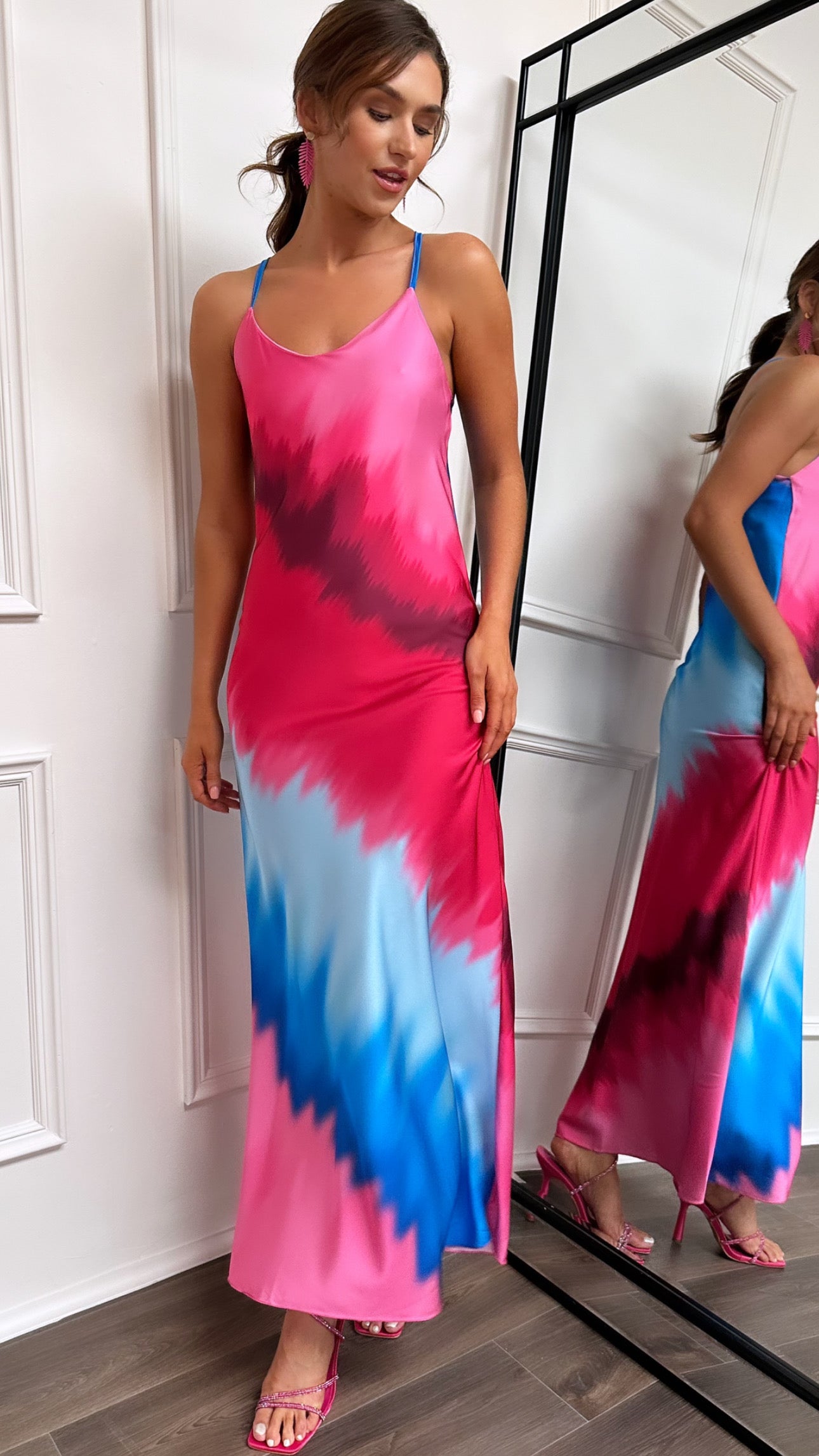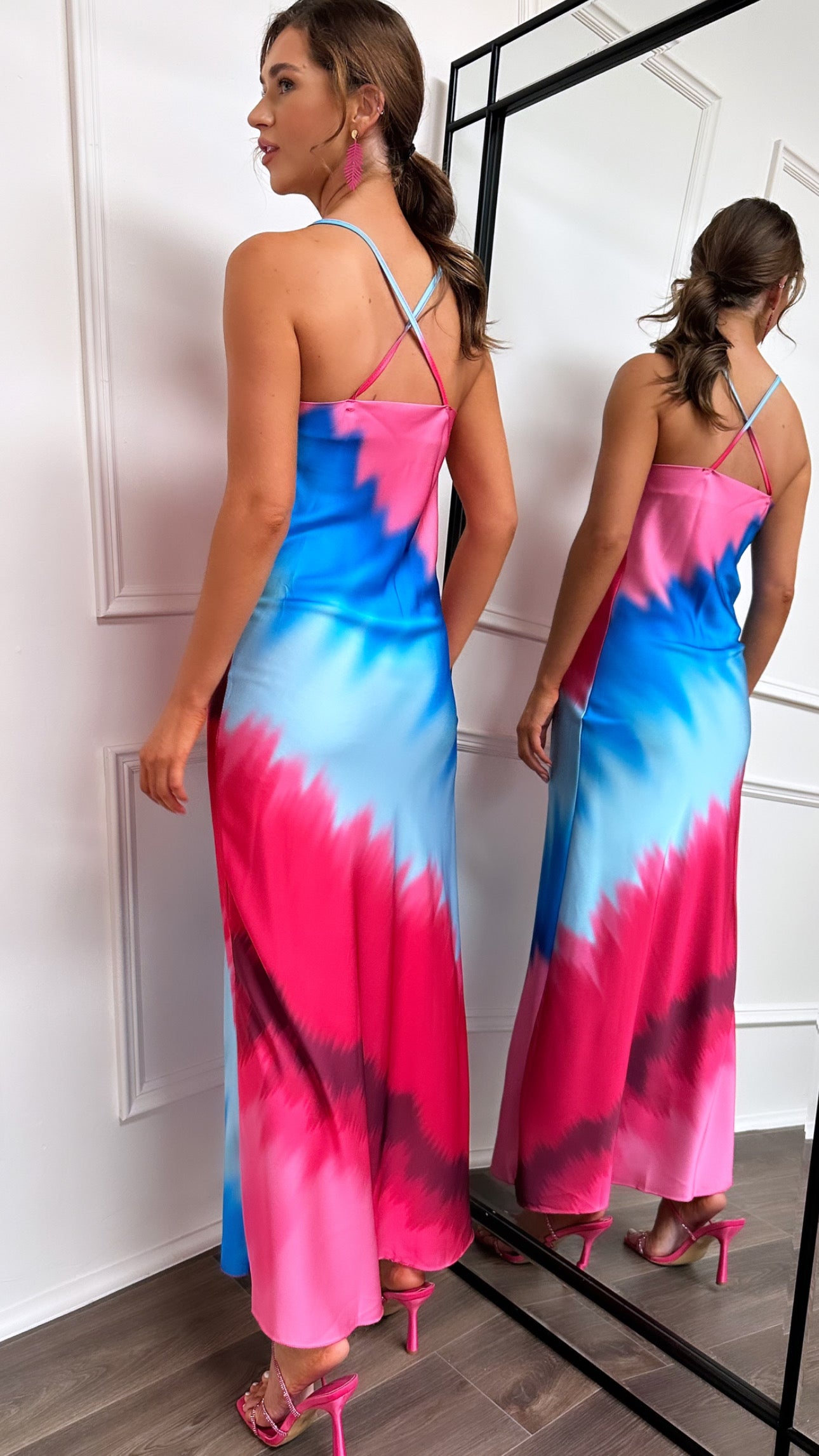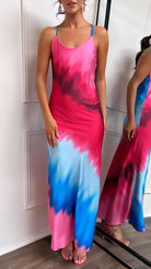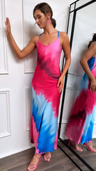 Rubina Magenta and Blue Tie Dye Midaxi Dress