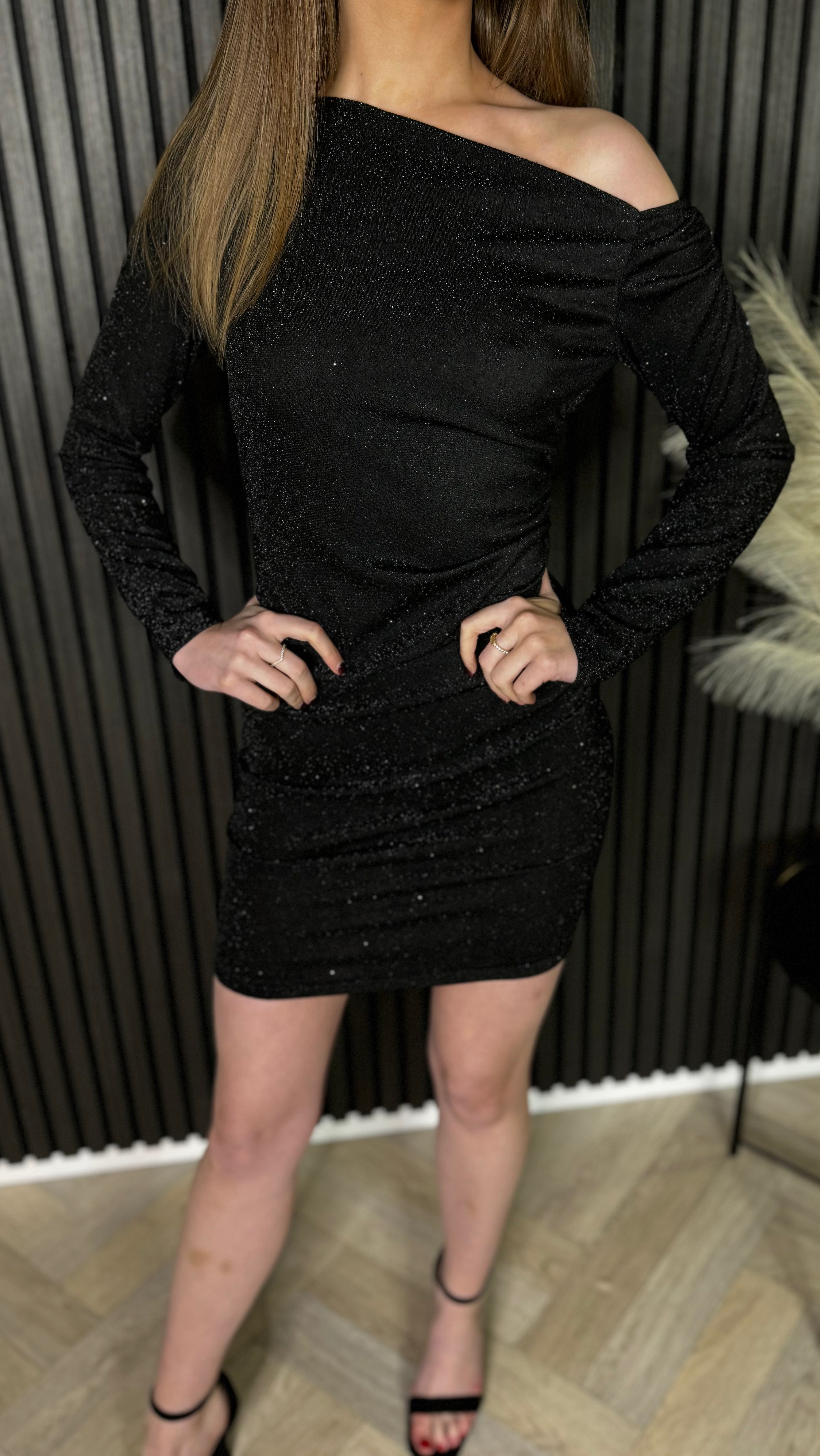 Shannon Black Sparkle Lurex Oblique Neck Mini Dress
