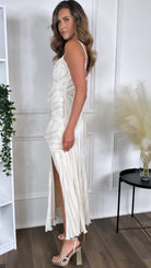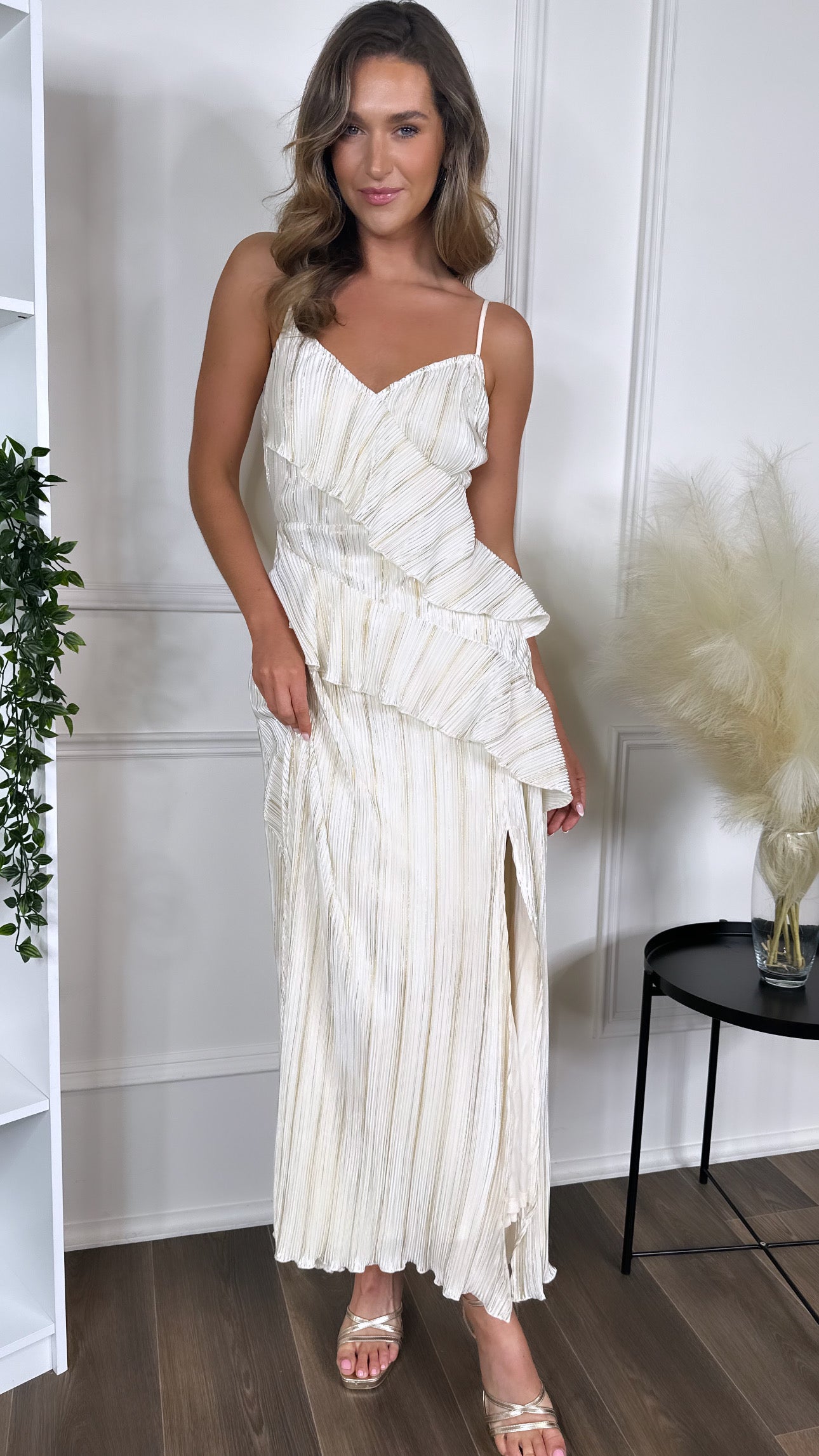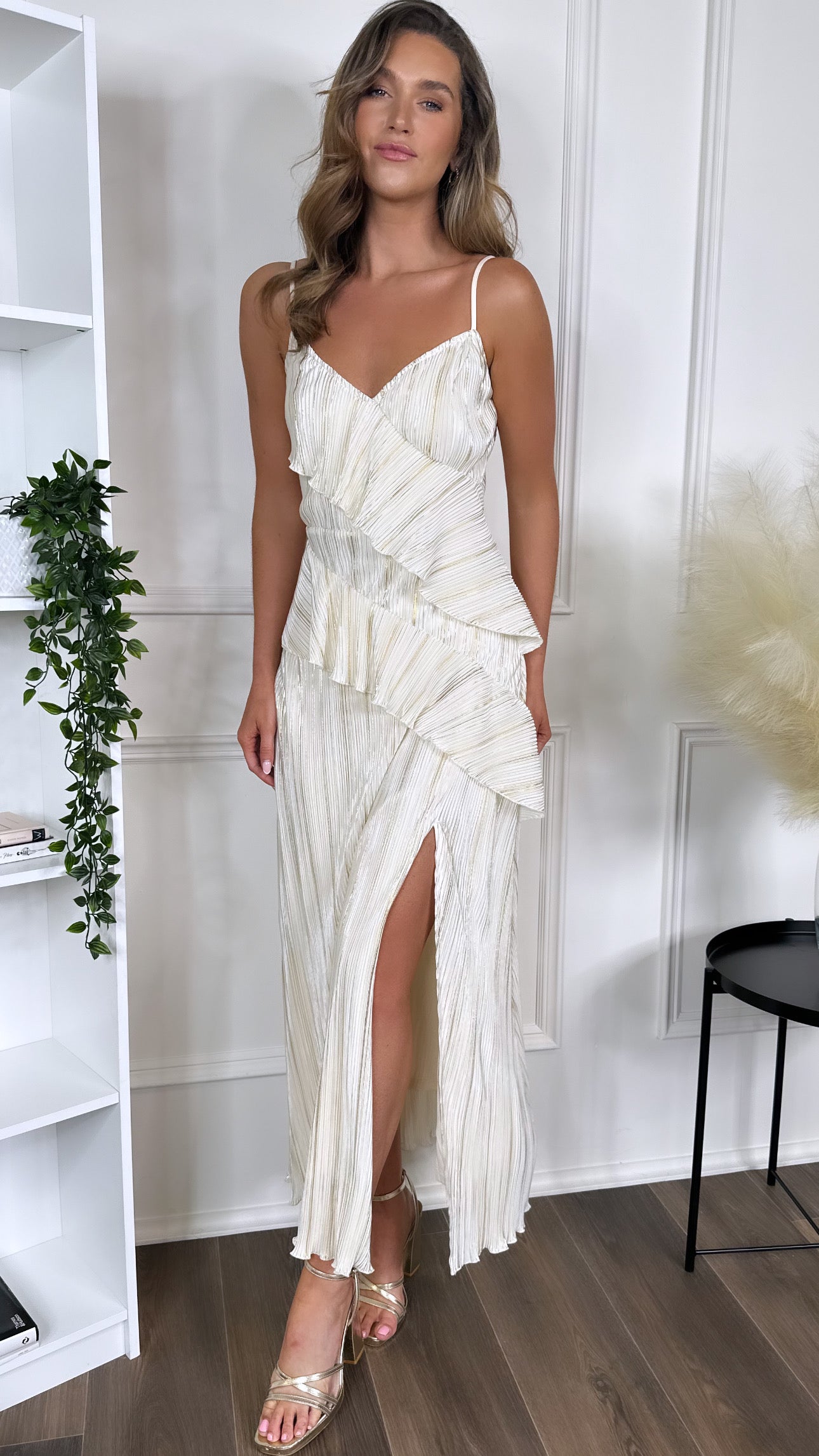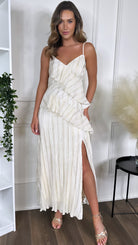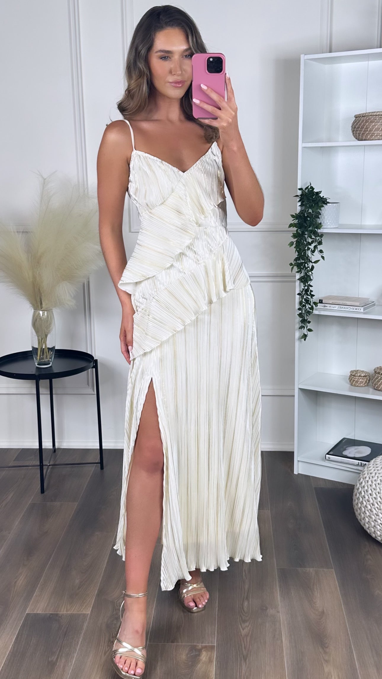 Shelby Cream & Gold Strappy Frill Detail Maxi dress