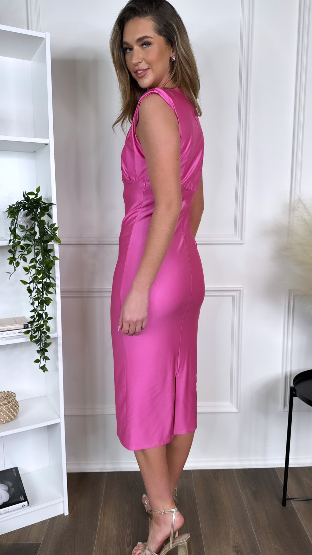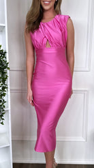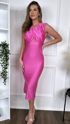 ✨Dazzle in the Starla Pink Ruched Cut Out Midi Dress! With a stylish ruched detail top and sleek straight midi skirt, this dress is perfect for any occasion. Sleeveless for a cool and breezy fit. Get ready to make a statement! 😍