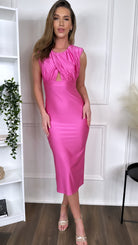 Starla Pink Ruched Cut Out Midi Dress