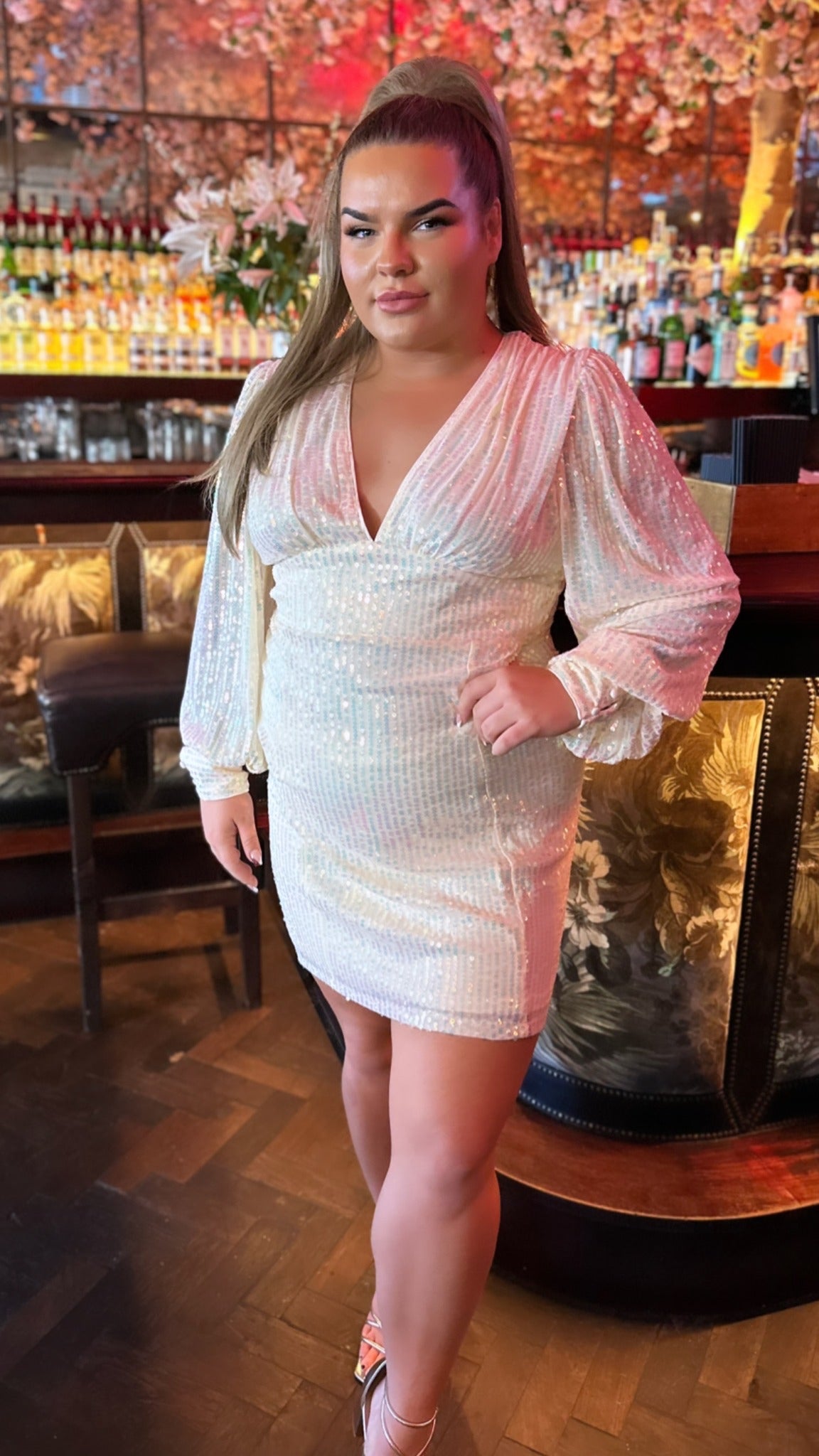 Make sure you shine like a 🤩 in the Starlette multi sequin cream mini dress! From the statement sleeve and sparkling sequin material to the ruched bust detail and flattering waistband, you'll be ready to hit any event with major glam. Show off those legs and pair with heels and minimal accessories - it's time to 💃 own the night!