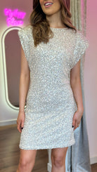 Stephanie Beige Sequin Mini Dress is ready to sparkle and shine! The defined lightly padded shoulders add a touch of sophistication to this playful and flirty mini dress. Perfect for a night out or special occasion, this dress will make you the center of attention!