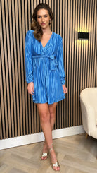Turn heads in this summer stunner! Our Blue Plisse Dress features a trendy v-neckline and a playful open back design. With a flattering belted waist, it's the perfect dress for any occasion. 🌞👗