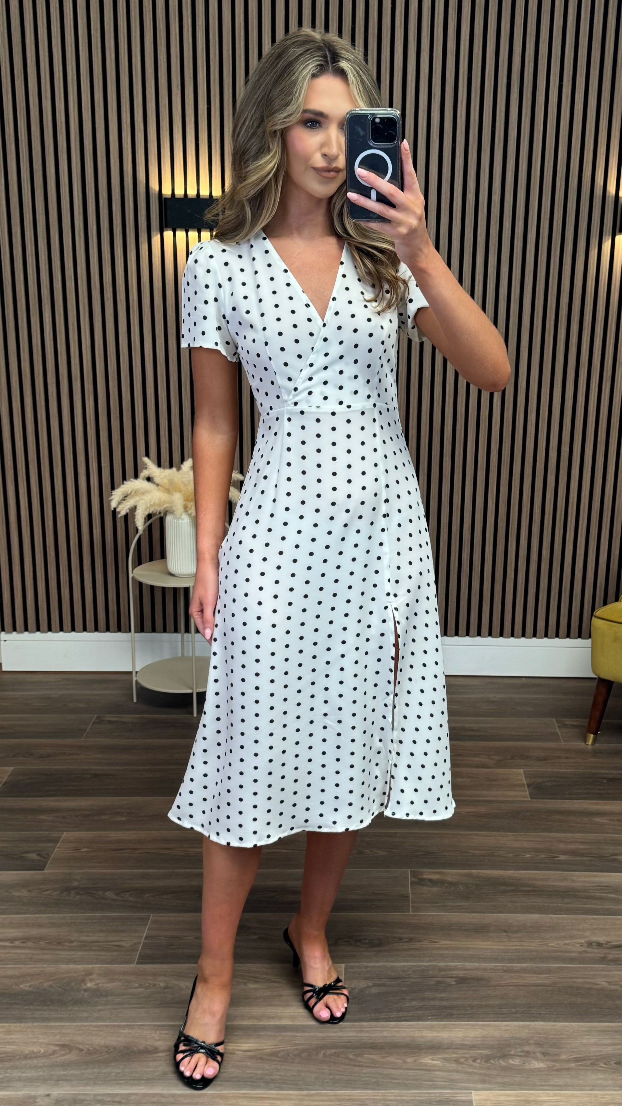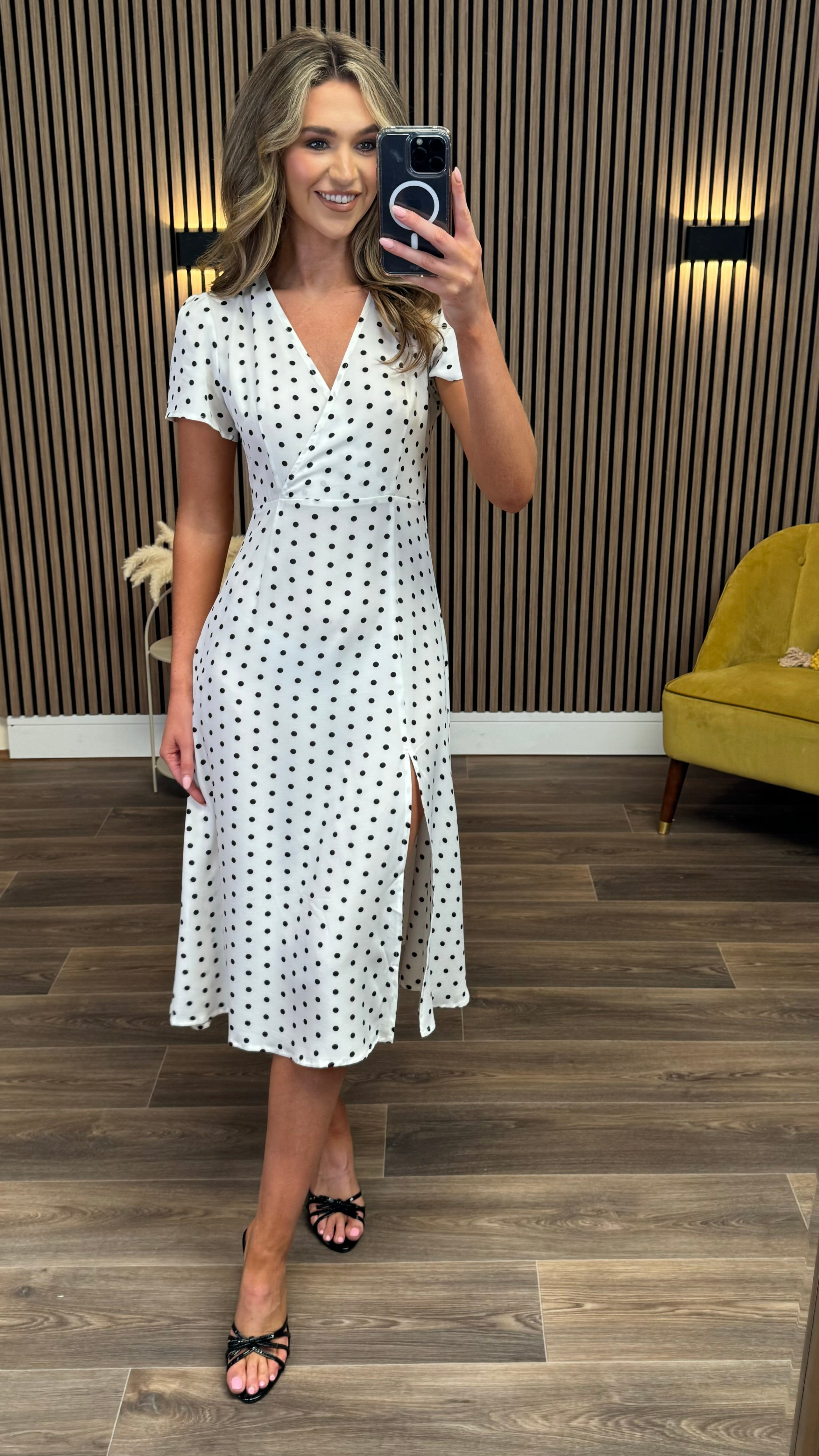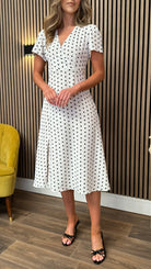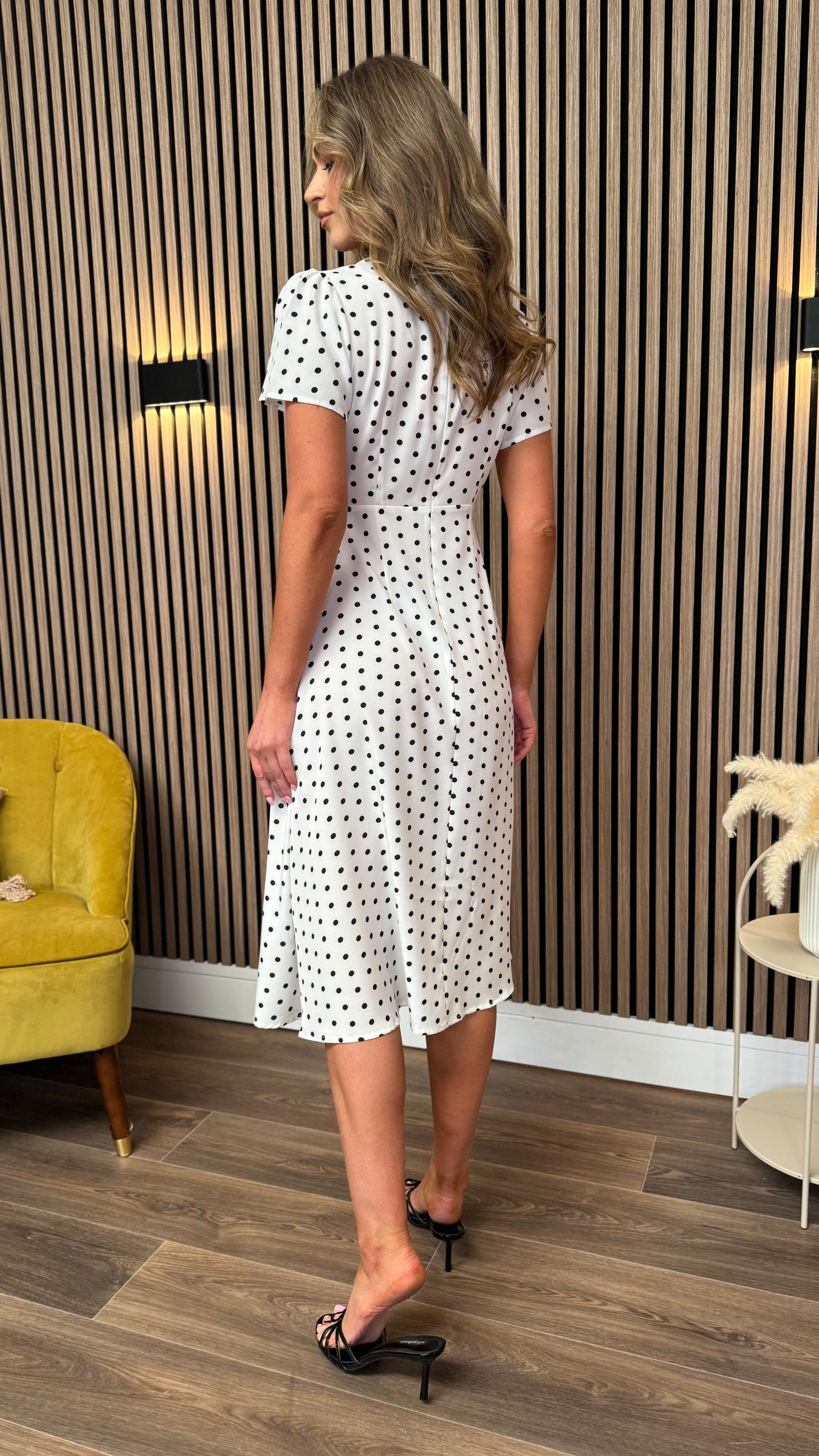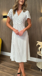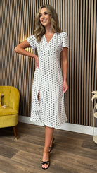 Tia White & Black Polka Dot Midi Dress
