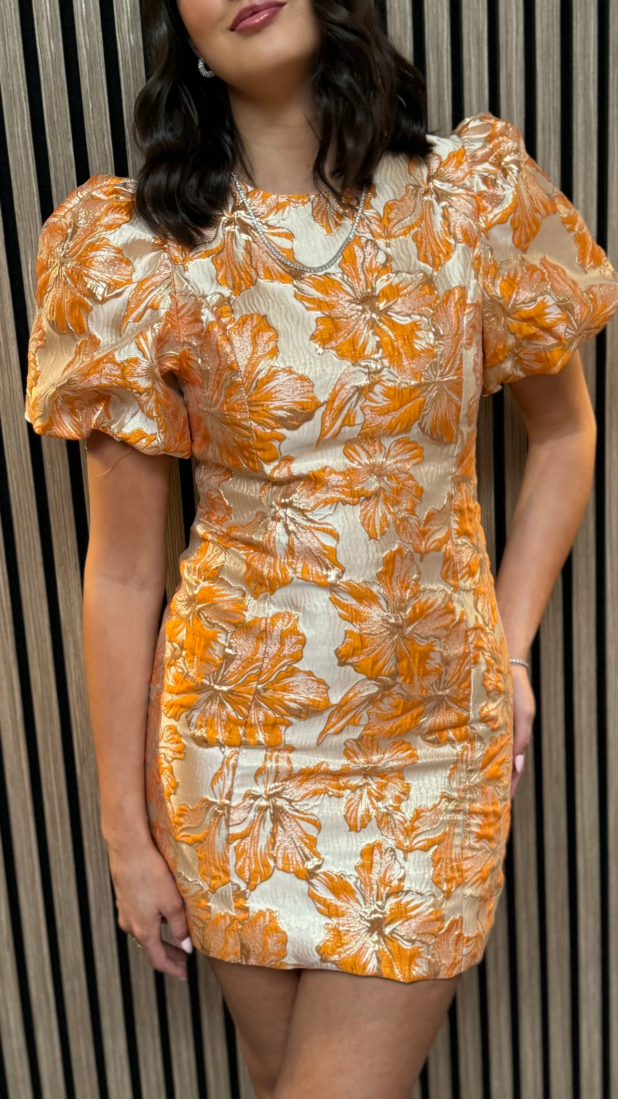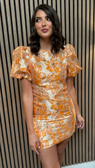 Ursula Orange & Gold Puff Sleeve Mini Dress