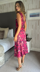 Vanessa Burgundy Floral Asymmetric Neckline Midi Dress