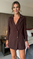 The Zinnia Brown Blazer Mini Dress combines tailored sophistication with a chic mini silhouette, perfect for confident days and stylish evenings. Its rich brown hue adds warmth, while the sharp blazer design ensures a polished look. Pair it with your favourite heels for a graceful finish. ✨👗